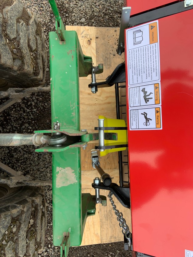 I had visions of just backing up to the equipment with our quick hitch system and hooking up to everything and just putting it in the machine shed. This did not happen, as not a single piece was capable of using the quick connect. I kept trying, finally Tex told me I had to take the quick connect off the tractor and hook directly to the three point hitch.