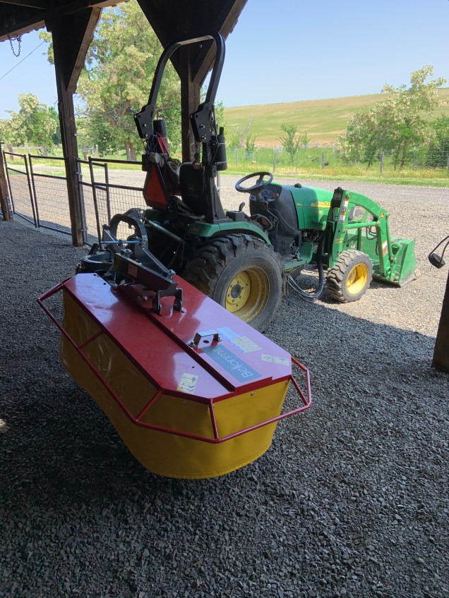 I fired up the drum mower and started to mow in the cow pasture. I figured it was a great place to start and work out the kinks. Yes, there is a learning curve on where you can drive and how fast you can drive. After about an hour I started to hear this thunking noise. I finally stopped the mower, lifted it and waited for the blades to stop. The blades actually take about a minute to stop rotating and after hitting a rock and slicing it in two I figured out why the manufacturer had 20 pages of instructions on how not to slice off a body part.