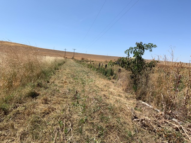 I ran the mower alongside the fence and got as close as I could. There is a hidden ditch near one end that I had to avoid so I did not tip the tractor over. Since I was already down this way I decided to try and mow the 7 acre field. It is one of the fields I want to plant in grass. The weeds are 4-7 feet tall and are very thick. It really needs some cleansing fire, but I am afraid to burn anything as I think it will get out of control quickly. This limits me to the rotary mower. The mower did not get choked out because all of the weeds are so dry. They don’t act like a rope when they get under the mower deck. The real problem is all the seeds and fuzz that the weeds put off clogs the air intakes on the tractor which cause the tractor to overheat.
