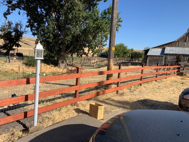 Zeke decided to come see me around 1400 today. He jumped the yard fence and came and found me. He played out in the tall weeds and would come within ten minutes of me calling his name. The only real problem is he is being rewarded for jumping the fence. We pushed the sheep and horses back into the barn lot and I picked another bag of plums. There is about 3-5 gallons of plums still left on the tree. The cows stayed back as Zeke was hanging out under the tree with me while I picked.