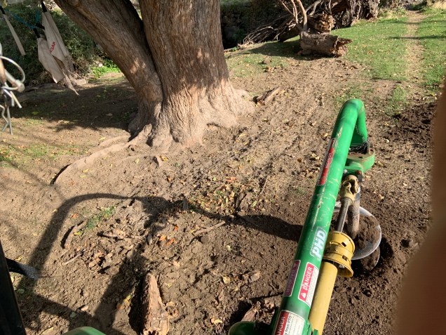 As soon as I took the tractor down to start drilling holes the cows came running. They thought I was going to feed them. They do not need food, I have confirmed this by putting out a protein block that they are half heartedly occasionally licking on. They are content to go around and eat the grass that is still growing. Once they realized I had nothing for them they wandered off.