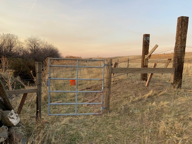 On Sunday I brought the tools to hang the gates and got both gates hung. I started in on the longest stretch of contiguous fencing. I spliced in a new 330′ section of fencing to the 30′ and had to splice in another roll and use up about 60′ more for a total of almost 400′. It took some effort to get the fence to come up off the ground. I finally had to use some spare wire to hold it up loosely and allow the fence to be tightened. In the process of swapping fence tighteners I managed to smash my pink fingertip and cut it through my leather gloves. I had a friend come out with a metal detector and go around the old school house. He found old metal nails!! No riches to be had.