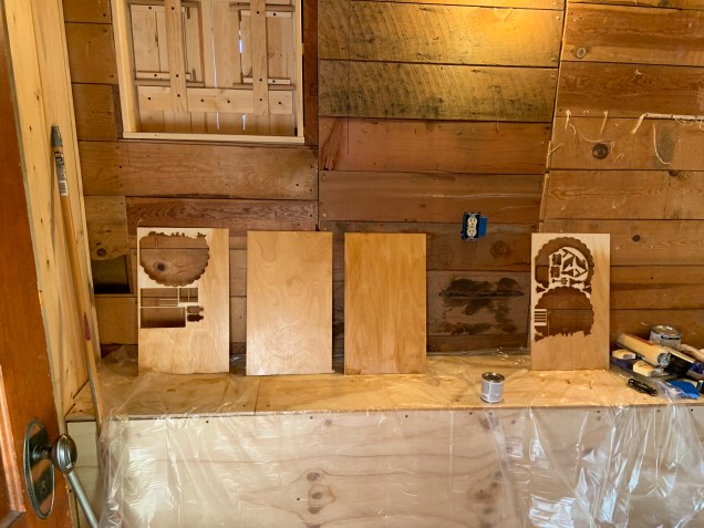 Annmarie used the upstairs bathroom to stain some wood for the laser cutter. Its a great space as we can shut the door and turn on the ventilation fan. It may become a permanent craft location for this reason.