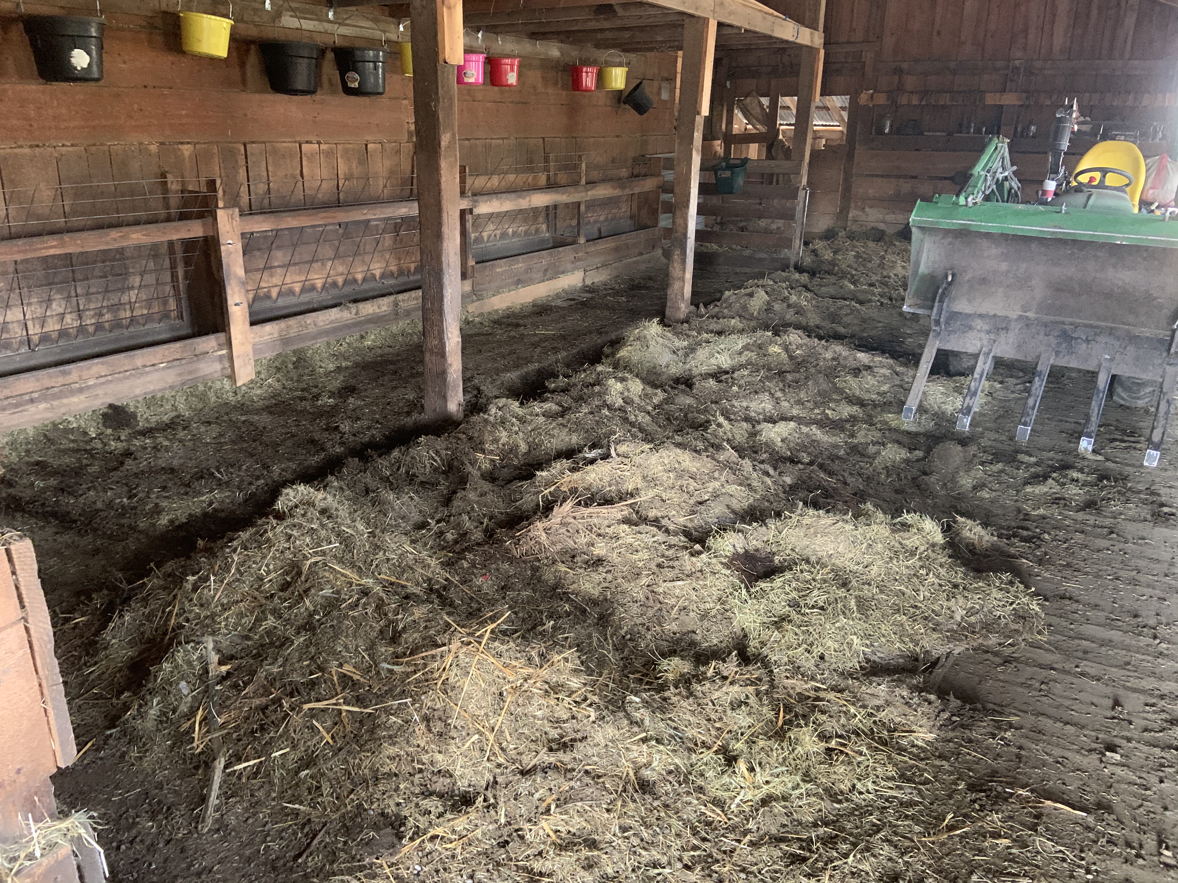 I spent another four hours digging sheep poop out of the barn for a total of 14 hours so far. I have the entire feeding area cleaned up and I think I can can be done in four more hours with some help. I have two new raw recruits coming on Wednesday morning at 0700 to help with the barn. I want to get the barn totally done and get the fence area all cleaned up in the barn lot so we can start rebuilding it.