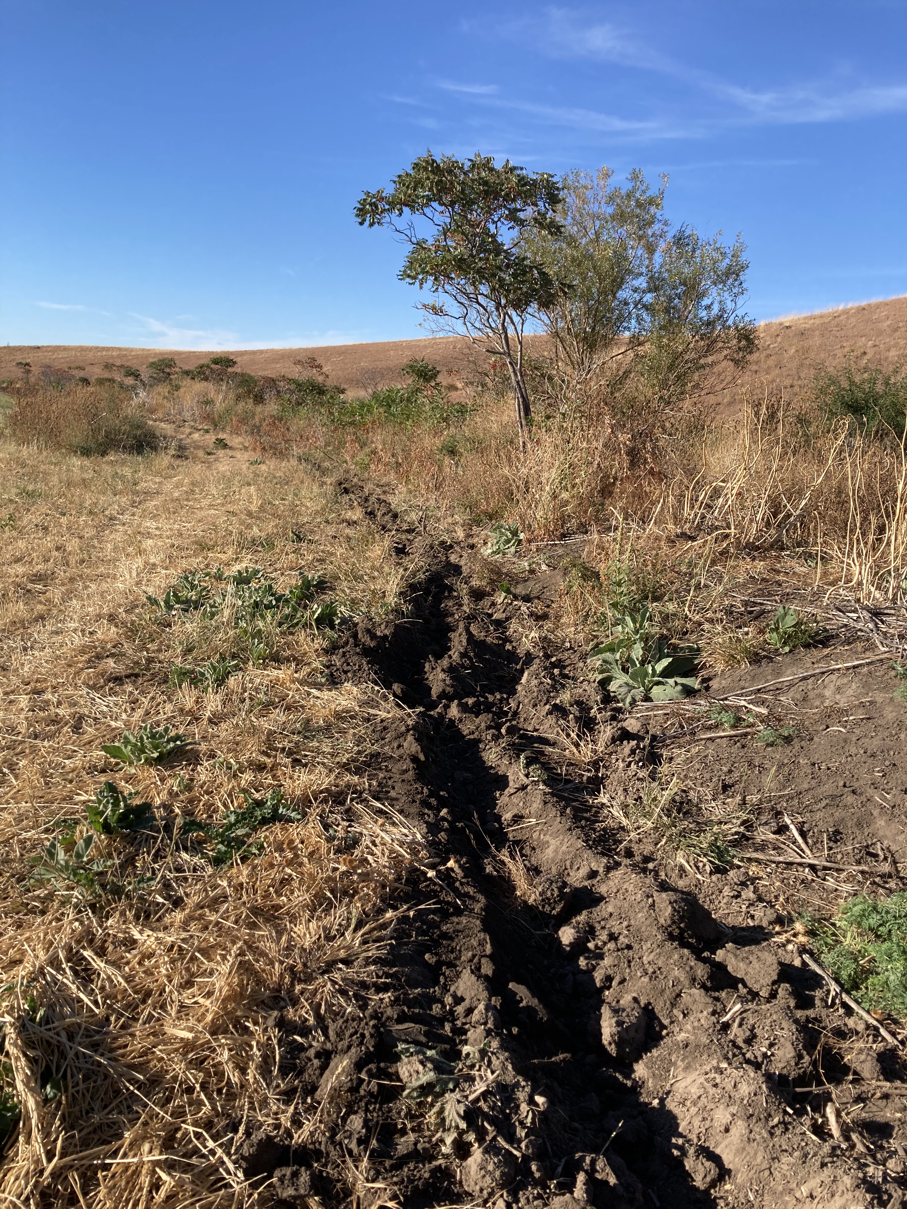 Monday morning I fixed the lights on the tractor. I had a smaller light that I installed looking forward. The light is about 75% smaller than the one I knocked off. I realized that you don’t need much light looking forward, more looking backwards where the equipment is pulling behind the tractor. I had so much light power I was sucking the battery dry. So less light is better for multiple reasons. Today I cut a piece of pipe to use as conduit so that branches could not grab the loose wires. I will need to try it out in the dark and see how it works still.