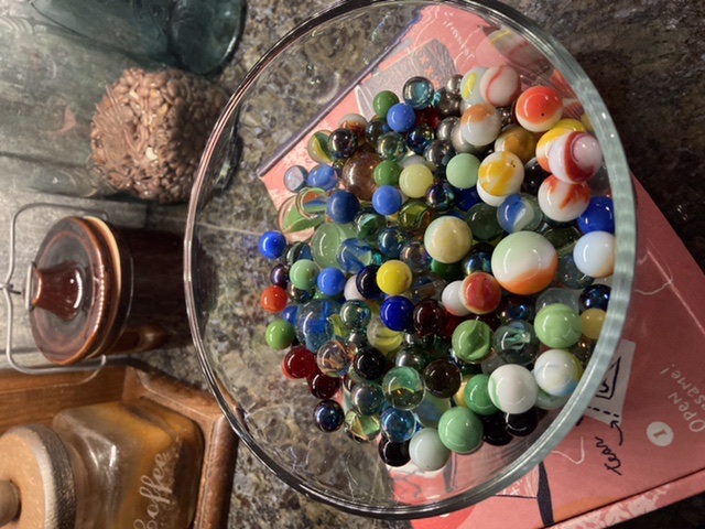 I am continuing my pursuit of old marbles. I have a few people who look for them for me when they go to yard sales. These bad boys have been washed and polished and are ready for the container up in our office. The one in the living room is full already. It usually takes me a few years to fill one of the containers up. I like them and they remind me of playing with them as a kid which always brings a smile to my face.