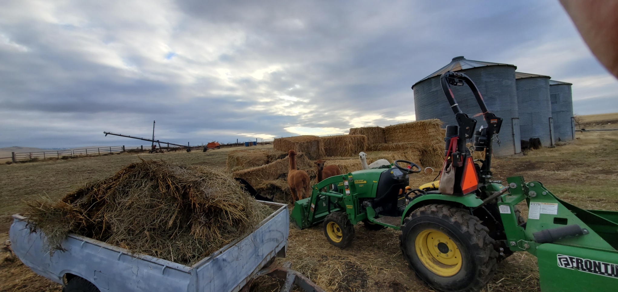Mr Professional came out to feed the cows and discovered that the alpaca had broken open a large bale. I was sick and asked him to just pick it up and feed it to the cows. Unfortunately for him the alpaca had laid claim to this bale and were unwilling to give it up. He was convinced the alpaca were going to bite him. Spit on him maybe but they are not biters. He was not convinced so I had him come to the yard and get our two border collies. He was going to only take one but that is not good when dealing with the alpaca. They will gang up on the dogs and the dogs have to be pretty agile and persistent to get them to move away. He came back for Mouse and then I told him to just turn them loose and the dogs would push the alpaca away. He didn’t have to do anything but encourage them to get them. It was over in five minutes, the dogs moved all the alpaca away from the hay so that he could pick up the hay unharassed. The dogs were happy as they got to work, the only one unhappy were the alpaca as they did not get to finish eating their claimed hay.