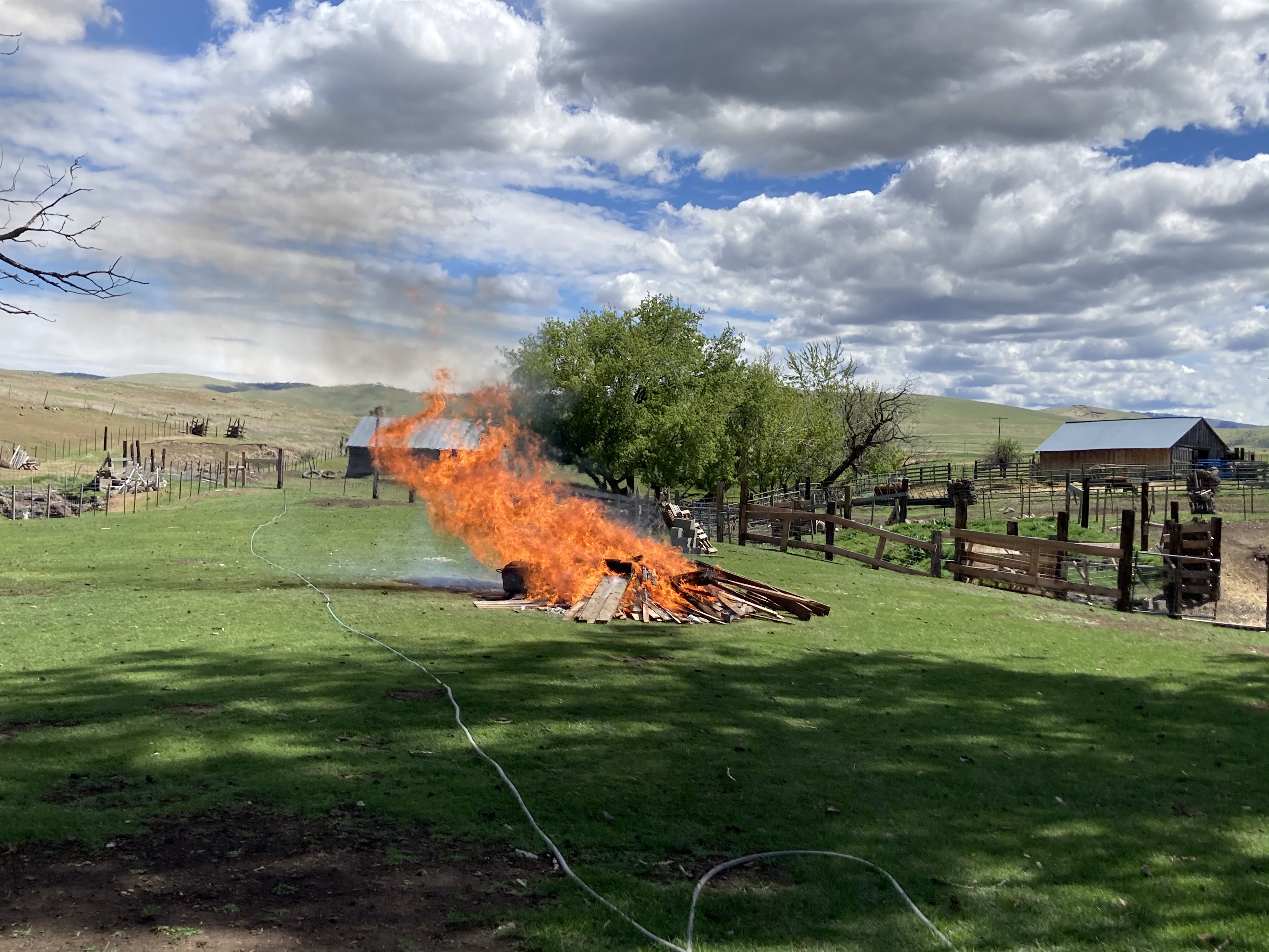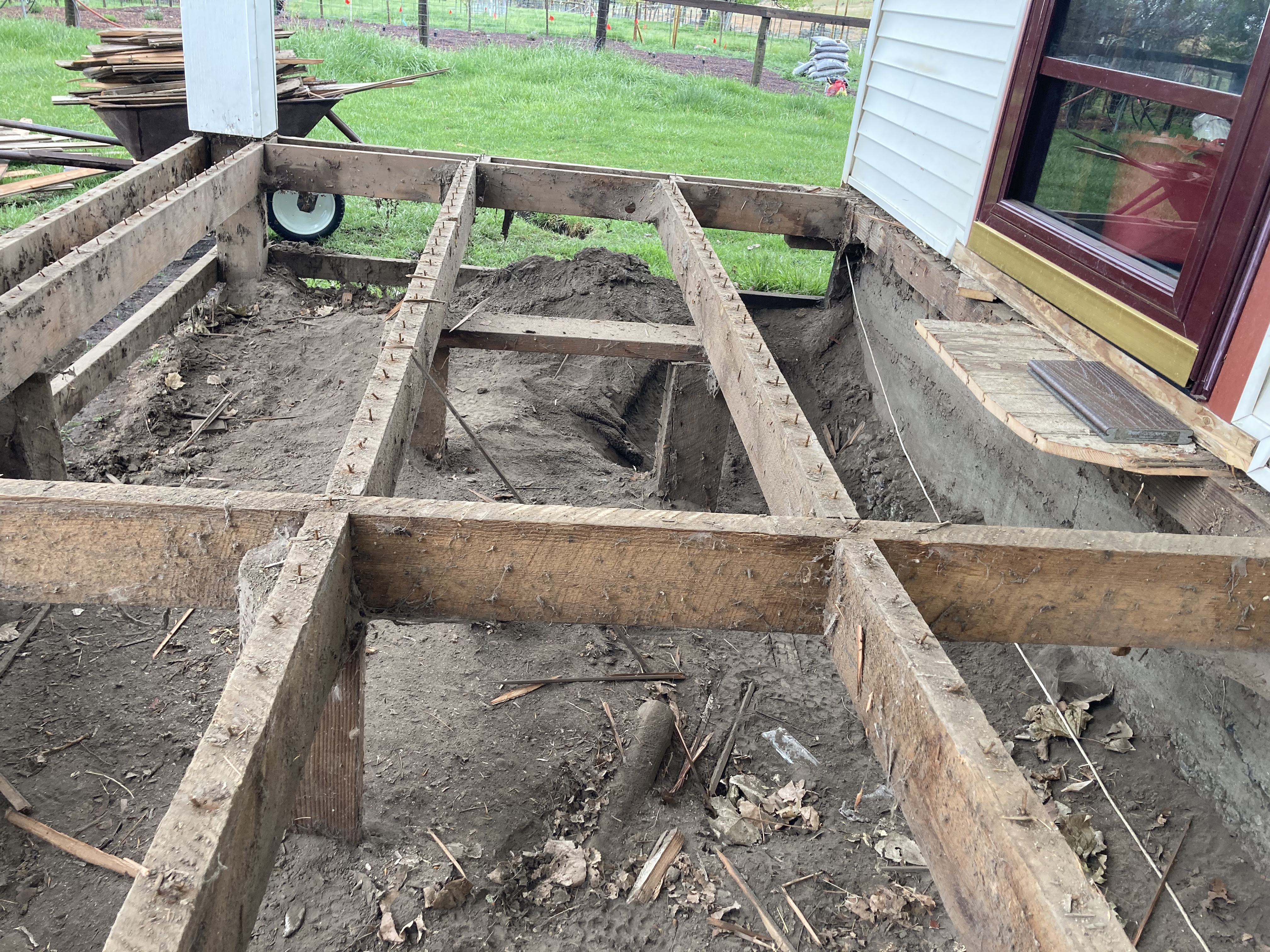 We really needed some accurate measurements so annmarie could CAD up the new porch using TREX products. She is going to make a parts list also so we can just go in and order everything at once. This will be super nice as we are going to need porch railing, step railing and we want to put 12v lights into the risers on the steps leading up to the front door. I will need to bring a 110V outside box out to the front of the house. This will mean crawling under the house and seeing what is what! I know there is a spot I can tap into I am just unsure where it is, I think there are three places, two I know for certain but its been at least ten years since I have crawled under the house. I am sure the spiderwebs are thick as thieves under there. I figured the only real way to get an accurate measurement was to pull all the decking off of the original porch. We needed to look at the supporting structure and see how much was going to need to be replaced. So Mr I Need a Belt Bad, Meathead and myself tore up the structure. Mr I Need a Belt Bad was the cleanup specialist and proceeded to make a large burn pile out in the pasture. We kept up at it and had the entire porch decking and eight feet of the substructure torn off in three hours. I was surprised at how fast it went. The two front boards along the outer edge of the deck will need to be replaced all around the porch. They are rotten from the water. We will replace with pressure treated wood and that will help considerably. It was a good thing we did tear it off as the decking went under the house four inches! Annmarie used to complain that there was a BREEZE blowing under the front wall and making the entire house cold. Once we installed the tile floor and sealed the floor to the wall this went away. Yep, there was no insulation and no covering, the wind was literally just blowing straight into the house. So we will need to insulate and then seal off the bottom part of the wall. As an added bonus we let Mr I Need a Belt Bad be the pyro person and had him light the porch slats on fire. He went out one time to shove the fire back into a tidy circle and realized that the fire is hot, what he didn’t know was if he had been wearing cotton or wool long sleeves it would have protected him much better. He didn’t get burned and the fire took a while to light as it had been raining!