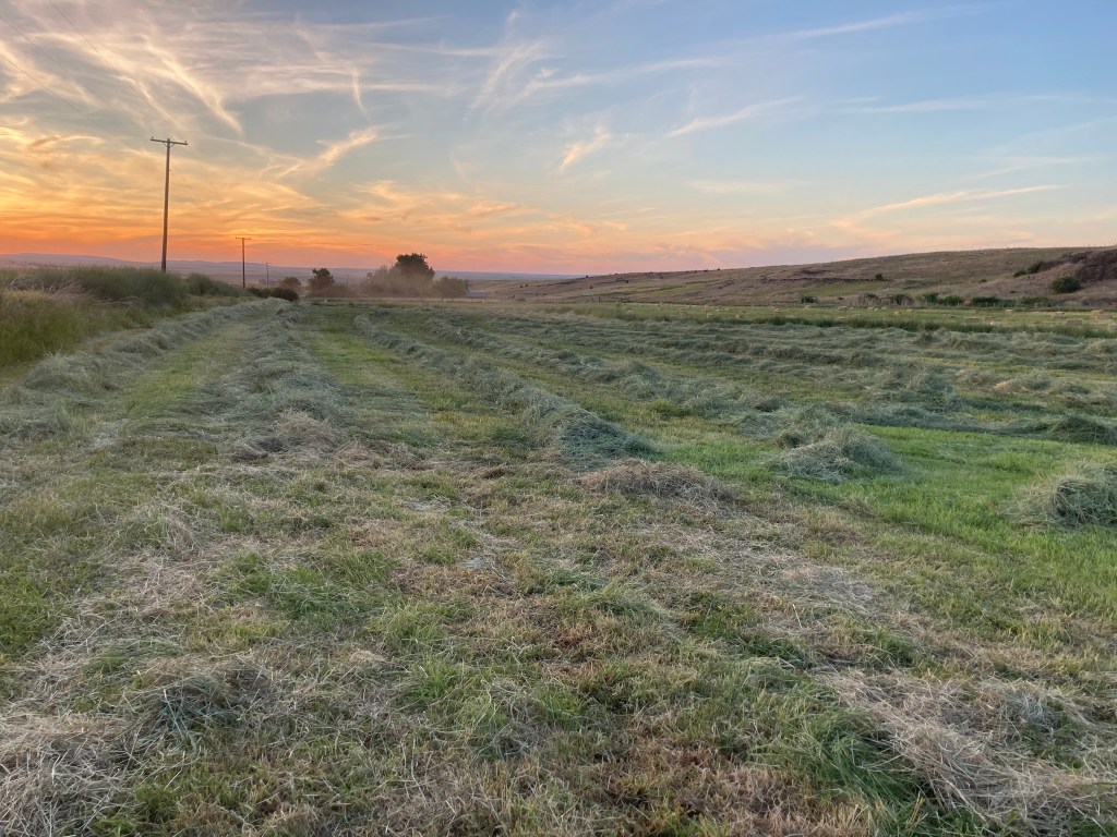 This afternoon I gassed up the tractor once Mr Professional was done cutting and we swapped out for the hay rake. I went up into field two to rake. Field two needs some work! The center of the field needs about 3 acres killed, dished then leveled with the arena groomer, there are ruts ten inches deep and furrows and water damage out in the field from the flood that did not get repaired. It is truly teeth shattering to bounce around. I almost broke the water fire extinguisher twice, it kept leaping out of the tractor bucket. We need to rework the stand so it is attached to the tractor better. I also need to order new U joints, and a driveshaft cover and end caps to keep the hay from binding up around the shaft. if you get in the tall grass it binds up around the driveline and you have to stop and cut it off. It’s a pain and should not be an issue. I have no clue when it fell off the parts order needs to go in tomorrow. When I was going through the gate I forgot that the grass catcher was sticking out and bent it on the gate. The gate is a little dinged up but when I bent the catcher back it broke, this only shortened it by about 6 inches. I need to order a new bar. While I am ordering parts I may as well order the runner part for the sickle mower that fell off yesterday! Screwy part was we had been tightening all bolts and nuts first thing in the morning before starting any equipment. I managed to get all of field #2 rowed and the rest of field #3 done. There was still quit a bit of moisture in field 2, it had only been 48 hours. We should be up and baling by Wednesday. I will turn the 18 acres tomorrow after work. We can then start baling all of it on Thursday.
