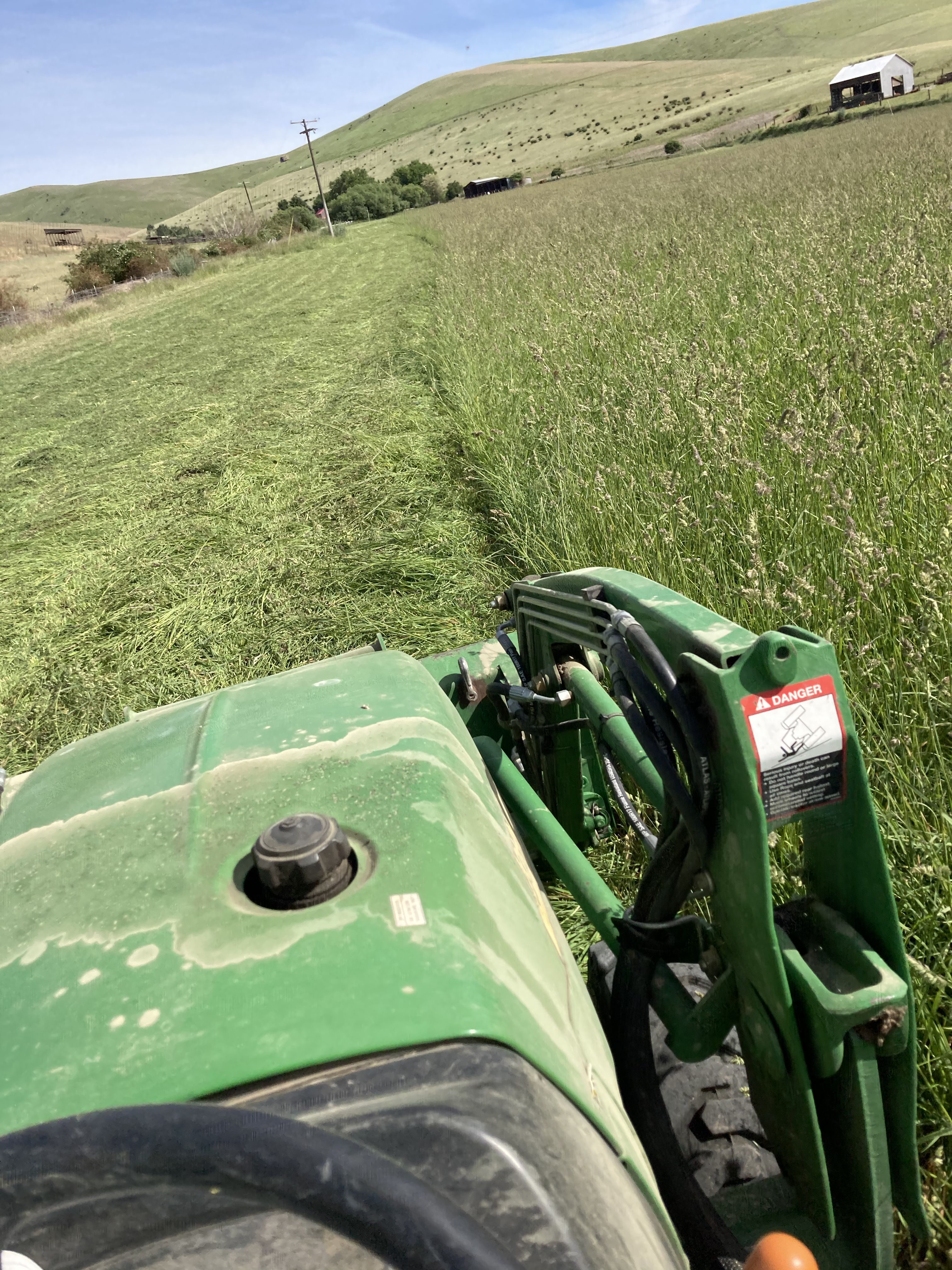 I had to go to work for a few hours Monday morning so Mr Professional came out, got the tractor cleaned off and full of fuel then went down to the school house and cut another 4-5 acres of hay! We have been getting it on the ground as fast as we can, pretty soon we are going to have to pick it all up!!