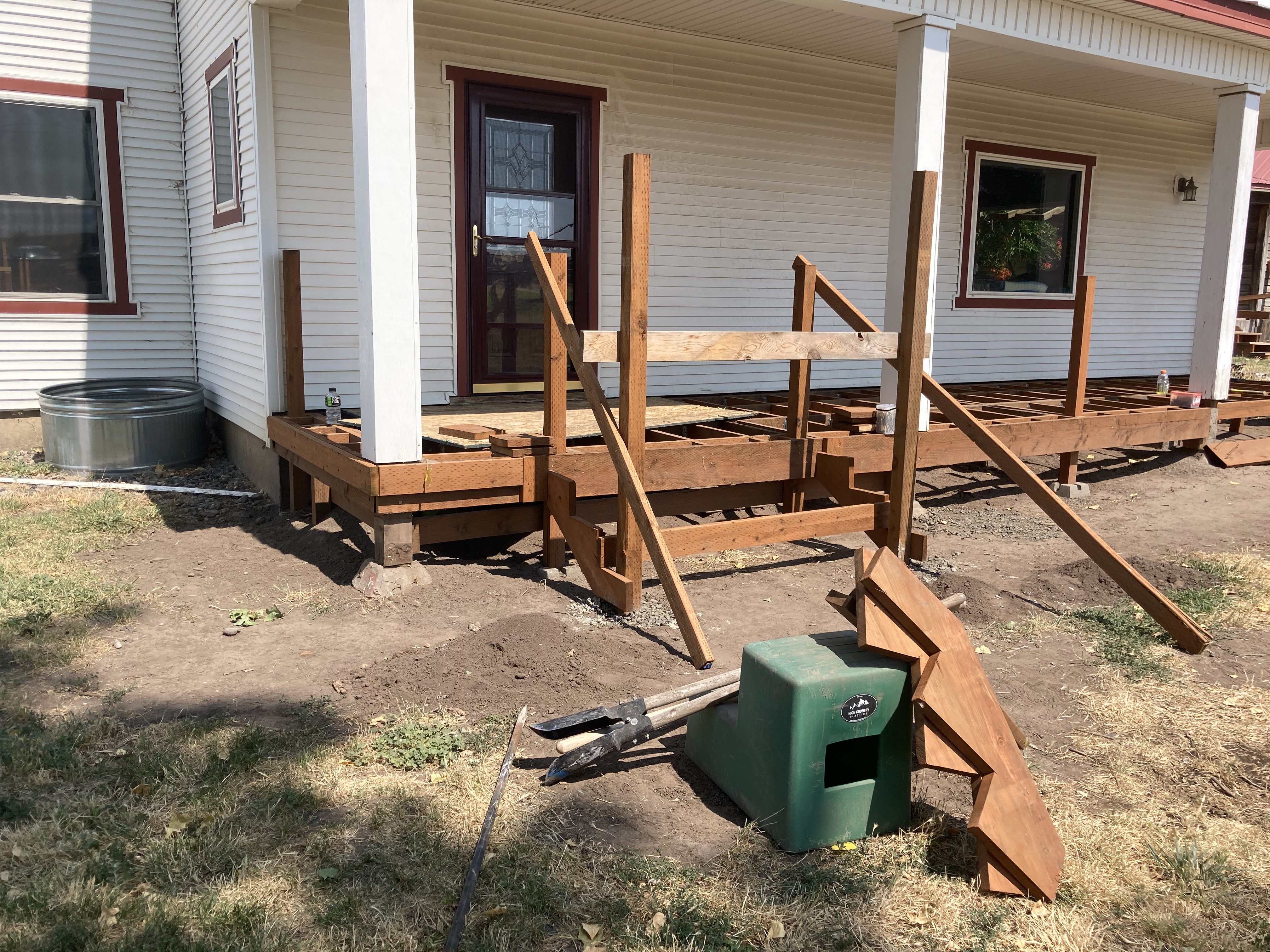 Once that was done we dug holes in the front yard and concreted in the two end posts for our new stair railings. We then finished getting most of the substructure completed. We just need to get the outside railing in and the stabilizer boards between the decking boards installed. I need to focus on getting the house cleaned, curtains installed down in the craft room, and toilet paper holder installed in the upstairs bathroom. We have company coming on Saturday so we will need to be ready. I am driving on Friday to go pickup our new ram.
