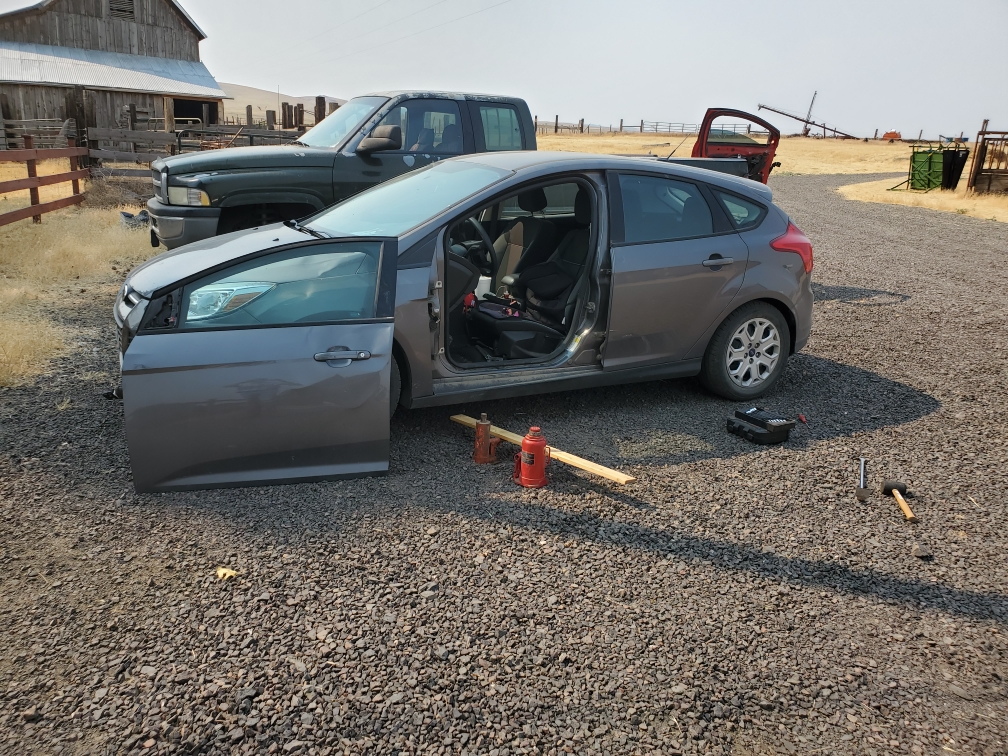While we were gone Mr Professional changed out my car door that was damaged by the deer. Unfortunately, a 2012 Ford Focus is not worth a lot of money and the cost to repair it was more than the car was worth. I was able to purchase a junkyard door, courtesy of an old Rob’s Speedy Delivery vehicle in the junkyard, and a new mirror. Mr Professional reused the interior door panel and my door handle. It works great, it is a little jarring on appearances but functionality is 100% so I am going with that standard. My goal is for me to hold out for at least another 3-4 years before I need to replace my car.
