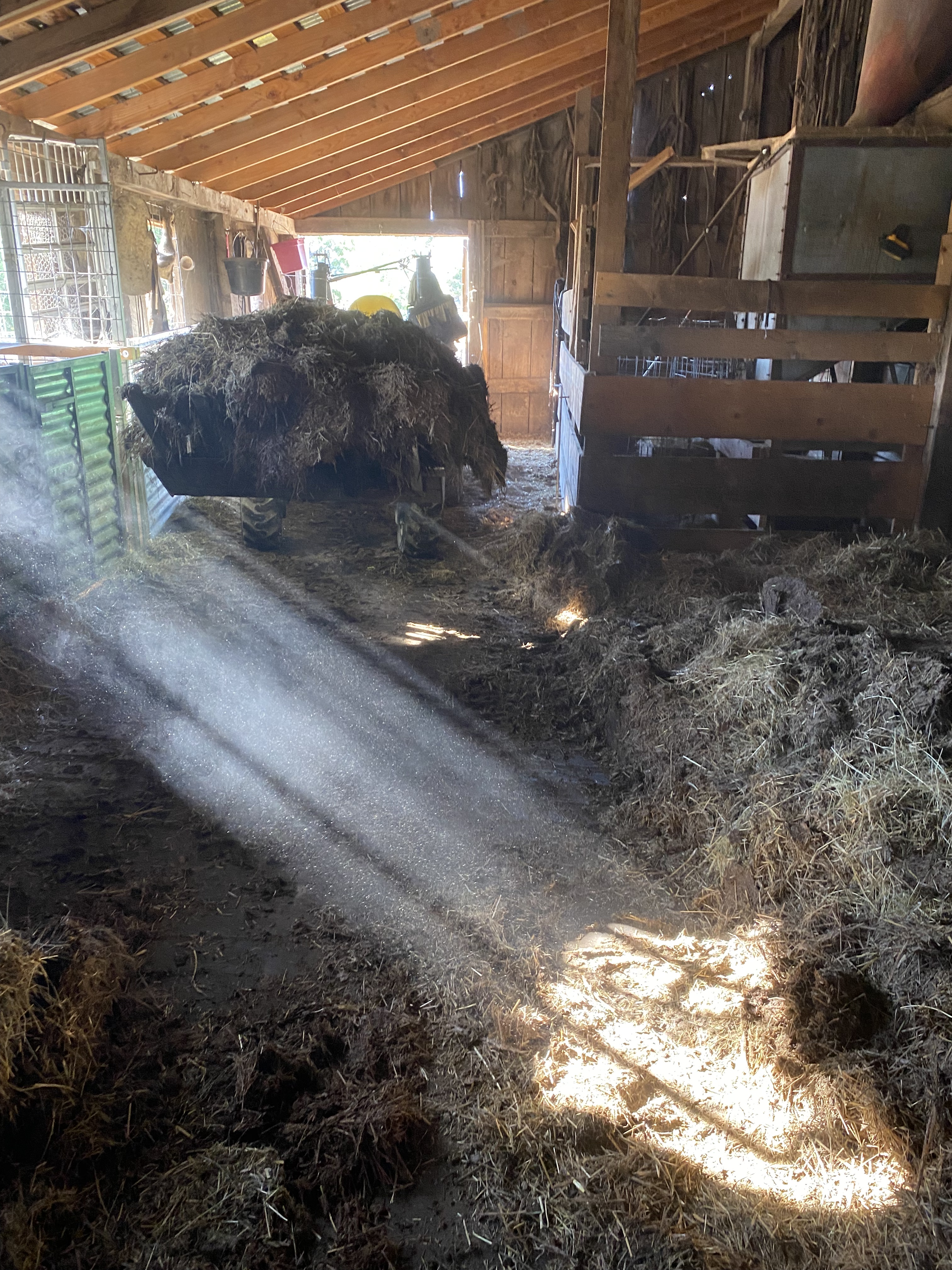 Mr Rainman came out also while we were gone and started cleaning out the barn. This is usually a 40+ hour thing and takes a couple of people. After two days he is almost done!! I could not believe how much he had gotten out. I am going to attribute it to our dry spring and not having 65 ewes in the barn. He has a few hours left and he will be done. Now that the bucket controls on the tractor are repaired he should have no trouble finishing up in one day. I am going to save cleaning out the chicken coop for Mr I Need a Belt Bad, I don’t want to deprive him of the experience. It is a character building endeavor, plus you have to wear an N95 mask the entire time.