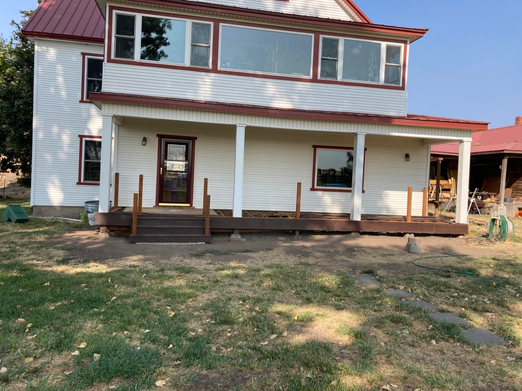 We did the stairs next and of course there was a bow in the middle of the stair. We managed to hide it with some creative spacing and it all turned out well. The stairs are all done now but there is a large dust spot at the bottom of the stairs. This is due to the bushes we removed and then the weeds we killed and then the continual beat down the area has received. This is causing a 1/4” of dust to be conveniently placed at the start of the stairs so all of that dirt can be tracked directly into the house. This is going to need to be addressed at some point soon.