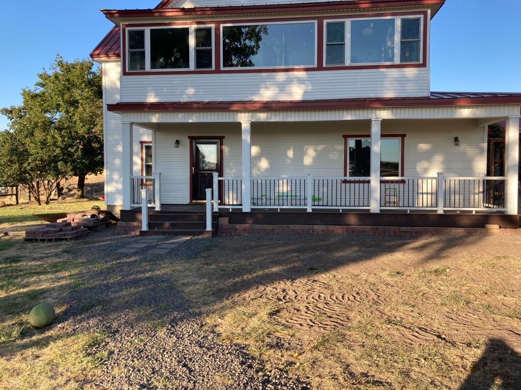 I decided I needed to get the power situation figured out so it would not be dragging everything else behind. It is also one of the few things that I have to do and cannot have either one of my helpers do. The world did not make a lot of electricians. I spent Friday morning bringing out tools and piling them by the crawl space entrance to get underneath the porch. Once I had a bunch of tools I actually read the install instructions for all of the deck lighting. Yep, I needed more parts, I will have to install a plug in under the deck, not wire in the power source directly like I thought. It was a little more complicated than I thought. I don’t have a special splitter that I need and I need some 12V extension cables also. I don’t have a third plug and I needed a 3/4 to 1/2 conduit reducer also. I made the trip to Pendleton and got what I thought I needed. It takes about 2 hours to make a quick round trip so I usually try and buy as much as I think I will need to prevent another trip. I worked on getting the porch outlet installed on the upright beam. I had to drill a hole from above then crawl underneath the deck and drill upwards at a different angle in an attempt to connect the two tunnels. I did do it and was able to get the wire and box installed on the porch.