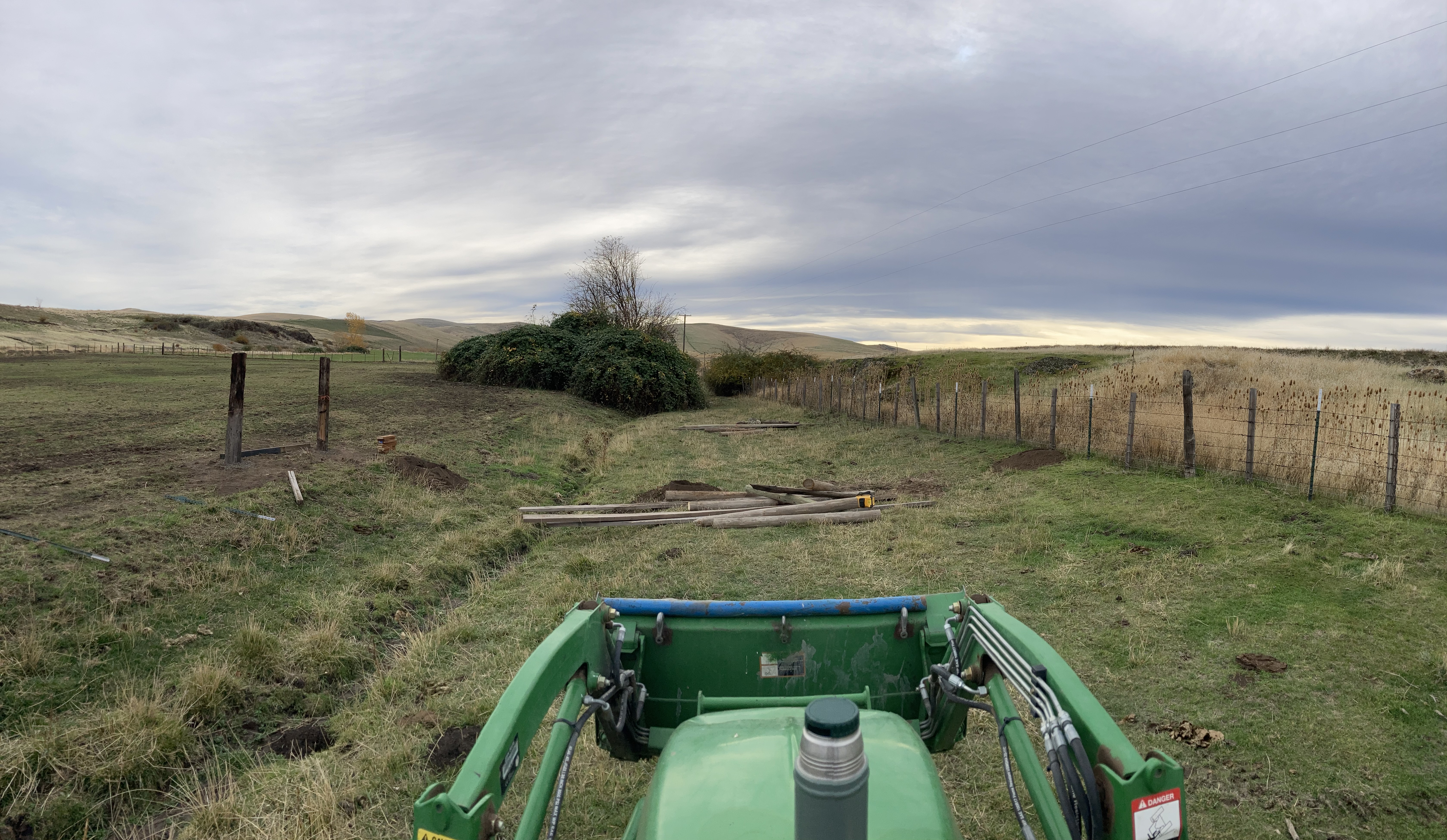 The fencing went fairly smooth. The fence is going into bottom land so it is much easier to drill in and that extra 150# of weight on top of the auger arm is the bomb! When the ground is not rock hard it just goes into the ground, I have a hole in a couple of minutes! It is so nice. Using the high tension wire and the cam tighteners is the perfect way to build a H-brace. It is super easy and now that I know what I am doing it is super easy to adjust. We have all of the T-posts and stays all laid out along the fence route. Three more H braces to finish and then press the T-posts into the ground with the tractor and we will be done with that in no time. We did have a piece of high tension wire pop and break today. Mr Rainman was putting too much muscle into use. I am now tightening the high tension line. We also converted a 50 gallon drum to ride on the 3 point attachment and its filled with metal horse shoes. The counter balance is great when moving big bales. The trouble is it drags on the ground a little and I did not realize how thin walled the barrels were. Depending on how things go I may need to think up something more permanent. I am hopeful we can get done in one day next week.