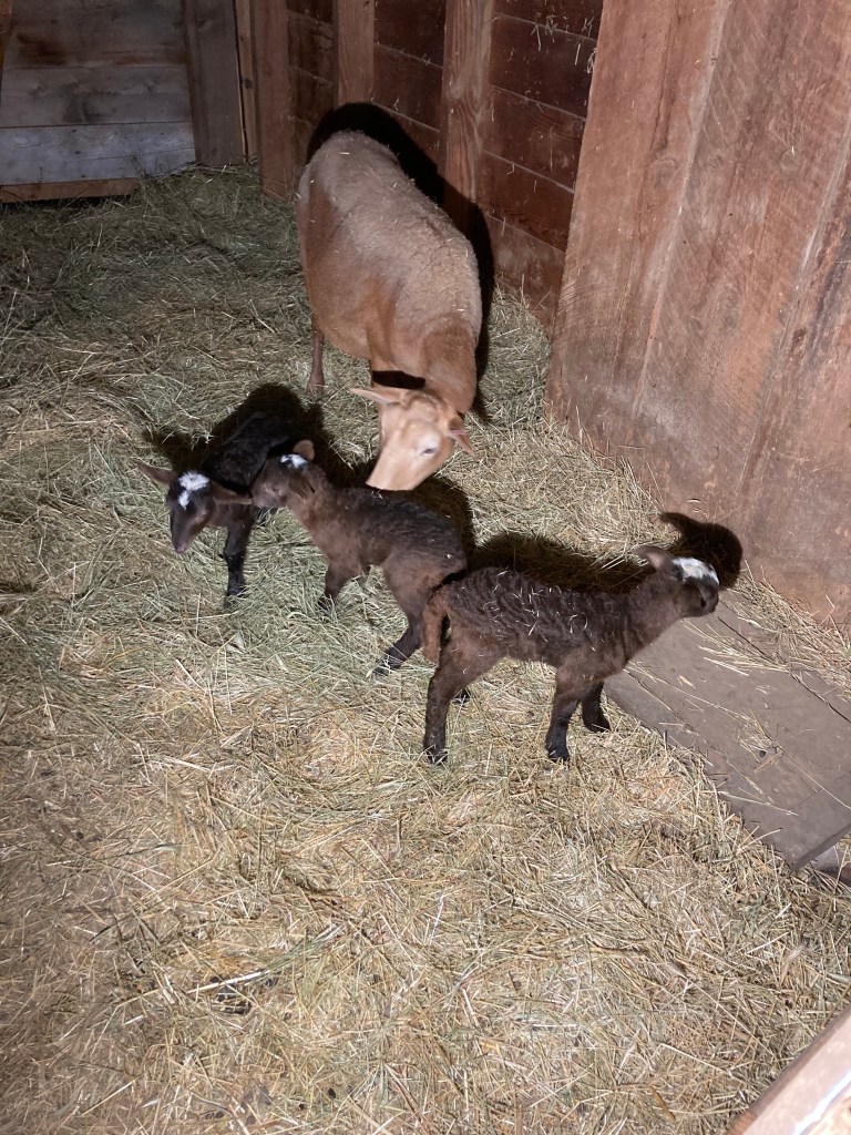 Friday evening when I went out to take care of the sheep and put them in for the night I found a pleasant surprise, three new lambs! I was even more surprised when I put them in under the stairs and discovered that one ewe had all three babies, triplets! I fed and watered them and then ran all the rest of the sheep inside. I ran the other sheep past 3-4 times to make sure no one had a bloody backside and was missing a lamb. Nope, they were really a set of triplets and the mother looked like she could feed them all. Saturday morning they were all up and walking around and Annmarie went out and dosed them all with some selenium supplement. They are doing great and the mother is able to feed all three. Of course no one else had any babies all weekend long. Saturday we set up three partial pens so in the morning if Annmarie needs a pen she can just add one wall quickly and be done with it.