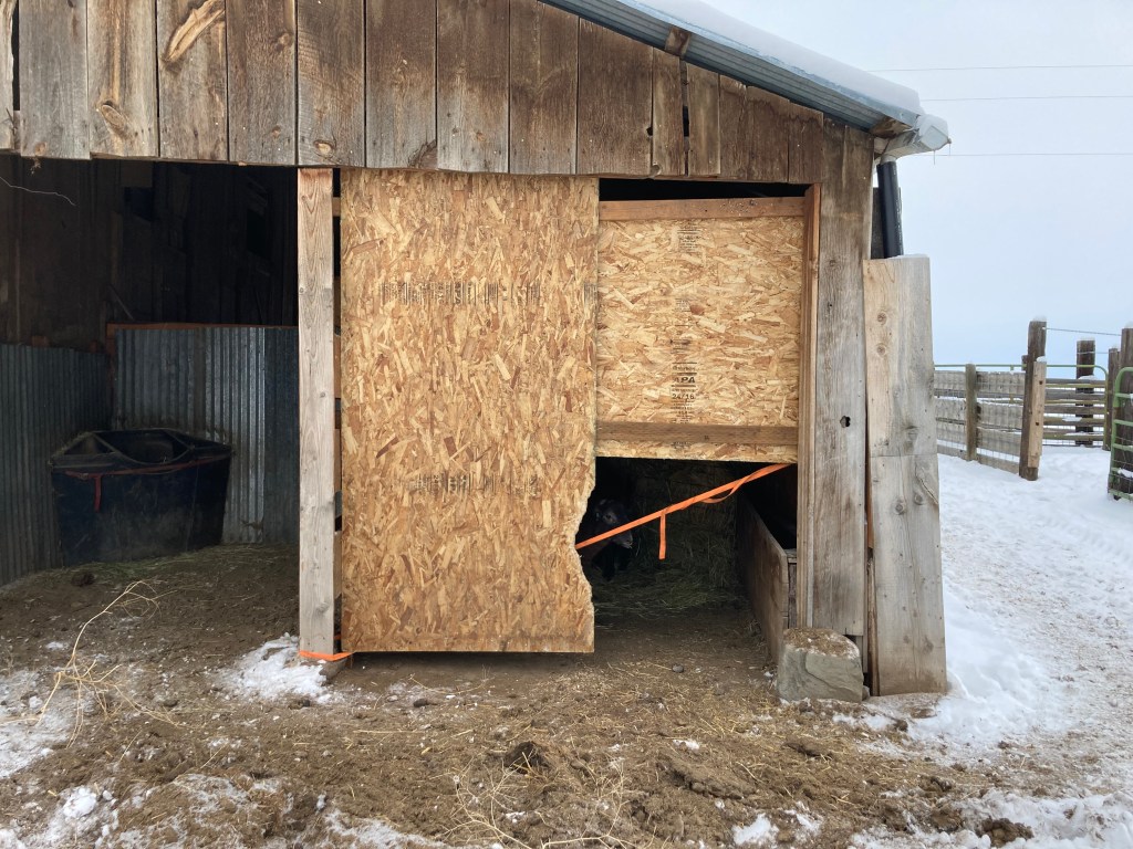 I had noticed that someone was cribbing our new ram enclosure. I suspected the horse but it was fairly low and could have been the sheep. After catching the horse in the old milking area I am convinced it is the fat horse trying to get to more hay. I used a tie down to make the hole smaller so even if she keeps cribbing she cannot get into the ram area. This summer we will build it up and make the exterior match the barn.