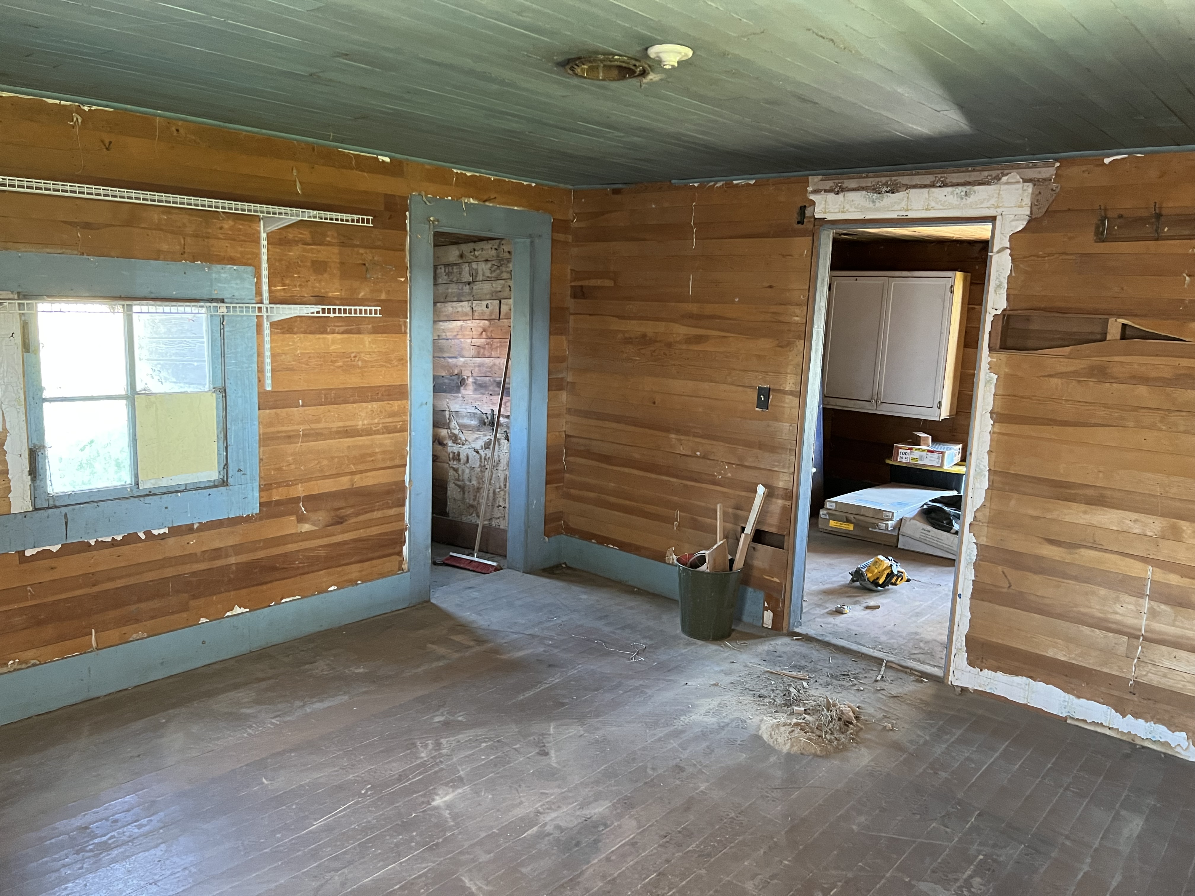 We went out to the machine shed and sorted through the piles of scrap wood we got a couple of years ago. It was leftovers we got for a steal and had it delivered right to the house which made it even a better deal. We are now starting to dig through and use the material for various projects around the house. But it was taking up space in the machine shed and we are going to make the old chicken coop the storage area. So we sorted out the junk. Sorted out the stuff we would use once for concrete forms, which are now stored outside the chicken coop and tarped, under the eaves, so we can have easy access to it when needed. We even kept the subflooring sheets and oak plywood sheets separately in the chicken coop so we can use them for the old house. The old bathroom is going to be Annmarie’s office storage room and it will get oak plywood flooring. The floors are slanted and will need to be leveled. The old kitchen, soon to be freezer room, will need to get leveled also but it will just be 3/4” subflooring and 1/2” plywood sheeting on it. We will just be sanding down the original floor like we did in our upstairs rooms in the house.