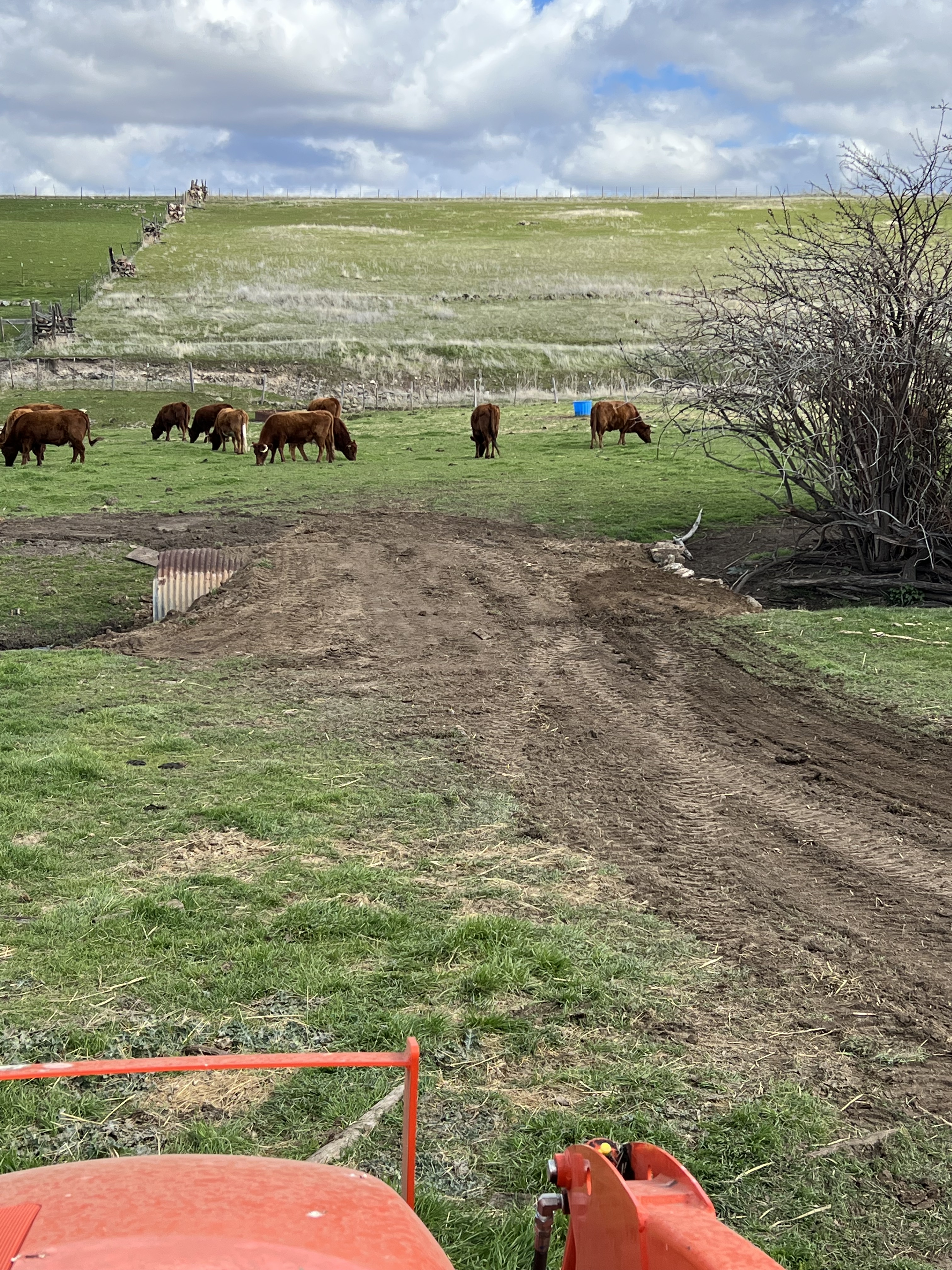 On Thursday we got the side by side ready to spray. I put the first 30 gallons of round up through just spraying our road and driveway down. The only bad part about roundup is it takes at least a week before you can tell something was sprayed and two weeks for it to totally die. We cleaned out the tank and Mr Professional sprayed field #5 & 5A with 2-4-D & Milestone to kill the broadleafs, the thistles are already starting to spread. Unfortunately, the flood from two years ago changed the direction of the creek and one of the tall banks is seriously undercut. We have probably already lost eight feet of hillside and may lose another eight feet. If we lose that total 16’ I will have to move the fence. There is a very large curve in the creek now. We finished cleaning up and tossing everything onto the burn pile. I will need to get that burned again in the next month.