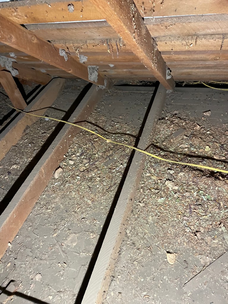 Today Mr Tex came out and we focused on getting the wiring done. We pulled the wires and I labeled both ends very well so I could install all of the outlets and switches correctly. I will also have to install all of the breakers and label them once I am done. I needed to install one triple switch and one quad switch but it has been years since I did it. I thought I knew but ran into the house and got my cheater book to make sure I did it right!! Luckily, we had 12/2, 14/2 and 14/3 wire so I was able to use what was necessary to get all the switches correct. I even went into the house attic and pulled down the leftover roll of 500” 12/2 hoping it would be enough, but it was not. Mr Tex got a list of stuff to do, fix the old bathroom ceiling and plug the window off and the bathroom hole. While he did that I ran to Pendleton and bought another 500’ of 12/2. I had not wired any of the freezers yet. We got wires ran to two freezer outlets. We needed to get my room cleaned out so we could move all of the remodel equipment out of the freezer room. Three of the walls in the freezer room need to be torn out so we can seal the walls and install more outlet boxes, then insulate the walls.