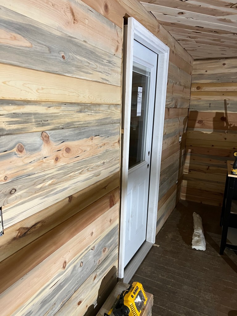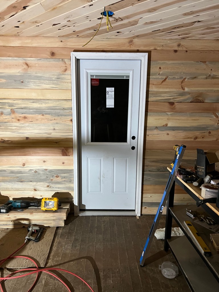 Friday I managed to get out to the new office and got Mr Professional came out. We crawled up into the attic and started to install insulation. We used all that I had and we still need a single bat to finish it up. It’s about 3/4 complete now. He worked on finishing the wall while I worked on getting the door secured some more and getting the door handle and deadbolt installed. Once I had the handle on the door I moved on to wiring in the overhead lights. I am still on the first light and have never installed trac lighting before. I recognize the need for the trac to be parallel to the wall. We will see how it turns out but some light would be nice.