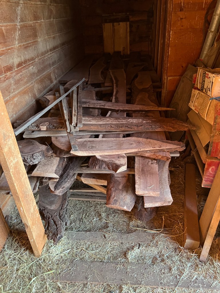 The black walnut tree I went and picked up this summer got cut up into lumber today. Mr Rainman and I went over and picked it up. There was more wood there than I realized when we dropped off the tree. Unfortunately, there was not room in the old chicken coop for the wood to dry out there. We ended up putting it in the barn! This meant that we could not set it up so that we could band the boards together. We got it all snickered and laid out flat and tomorrow we will pull down some of the long boards stored in the barn and pile them on top of the walnut. I figure a few hundred pounds of weight on top of the pile should help keep everything straightened out. All of the boards are cut to 1.5” thick.