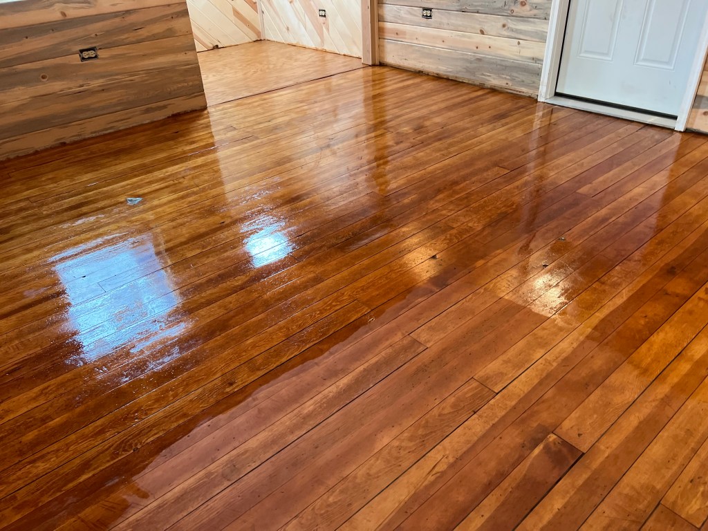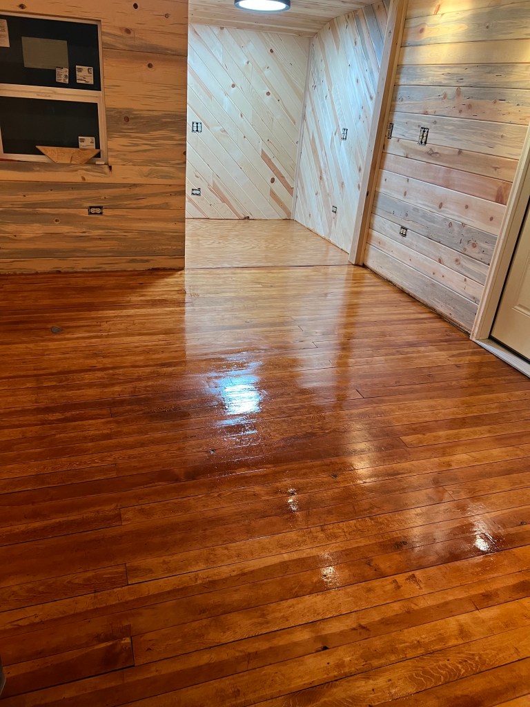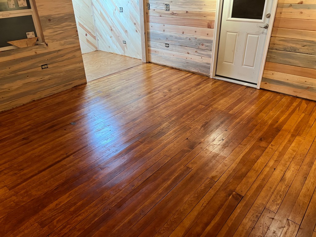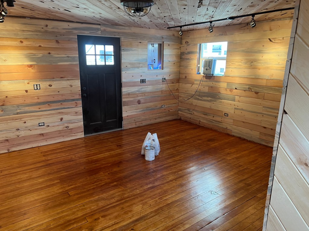 On Sunday, I took the wife out to inspect the office. I had spent the morning cutting and dry fitting trim. I could not do the floor trim until I trimmed out the door first. Unfortunately, the wall is leaning about 1.5” out away from the room. So when I squared up and leveled the door there is a huge gap near the top of the door. I had to come up with an overlapping system of boards to fill the gaps and appear to be planned. Once that was done I could start in on the floor. I managed to get over 50% of the trim cut and dry fitted.
