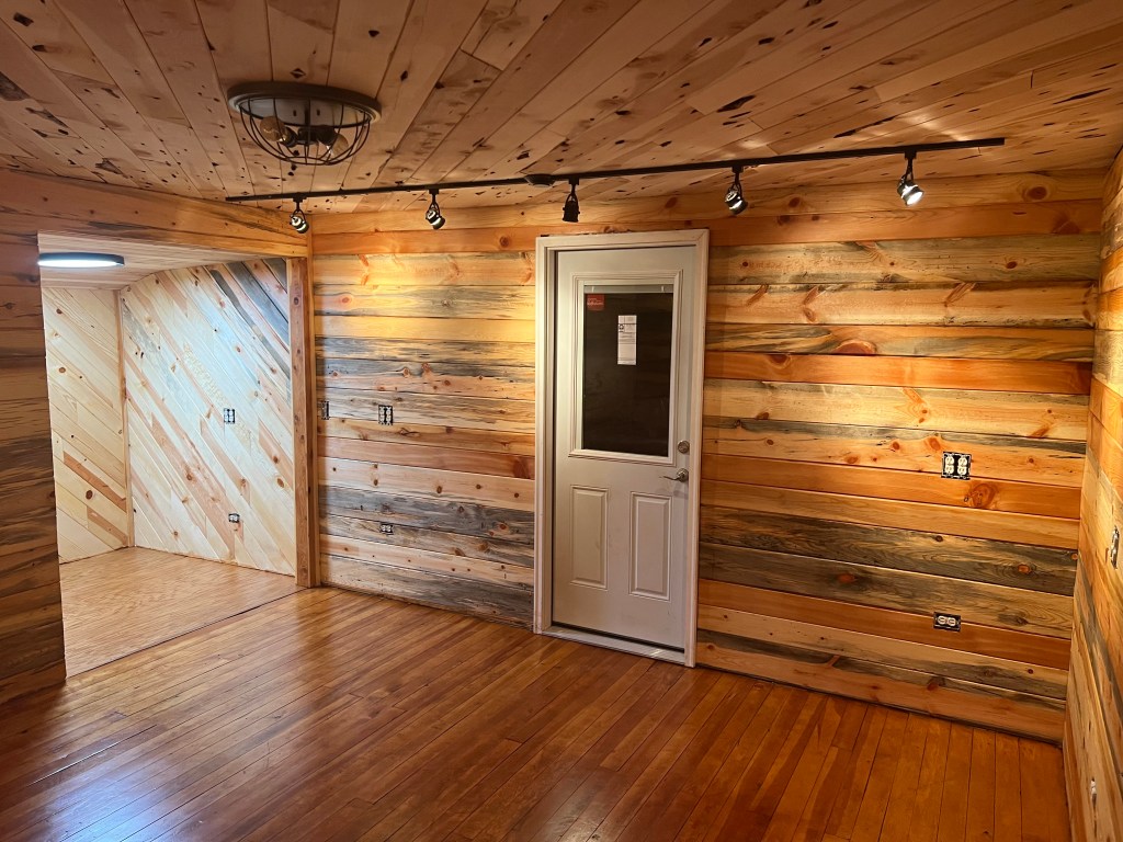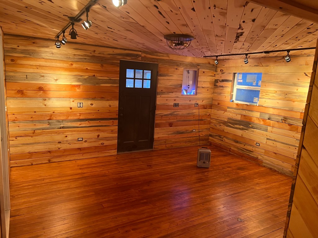 My last two days of staycation were spent working on the office. The nephews came out to move their grandma’s new loveseat into her house. It was on our front porch so they had to move out the old one, into the wife’s new office and on the way past the old chicken coop we picked up an old TV stand, an empty Victrola case and an old wooden closet. All four pieces got unloaded into the office. I tried to keep them more toward the middle as I knew the trim still needed to be installed. More like measured, cut, sanded, dry fitted and cut a second time. I was not really feeling like working on the trim so I cleaned and polished all of the furniture. Annmarie was out of town so I wanted it to all be clean when she got home. Sarah came out and held the new overhead room light up into the air so I could easily install it. Letting it hang by the grounding wire just doesn’t seem to be a good option any more. The new light works wonderfully. The only real problem is I, for some unknown reason, put the light switch on the wrong side of the door. I think I got a left hand sided door and really needed a right hand door. So now the switches are behind the door. I did install the switches before I had the doors installed.