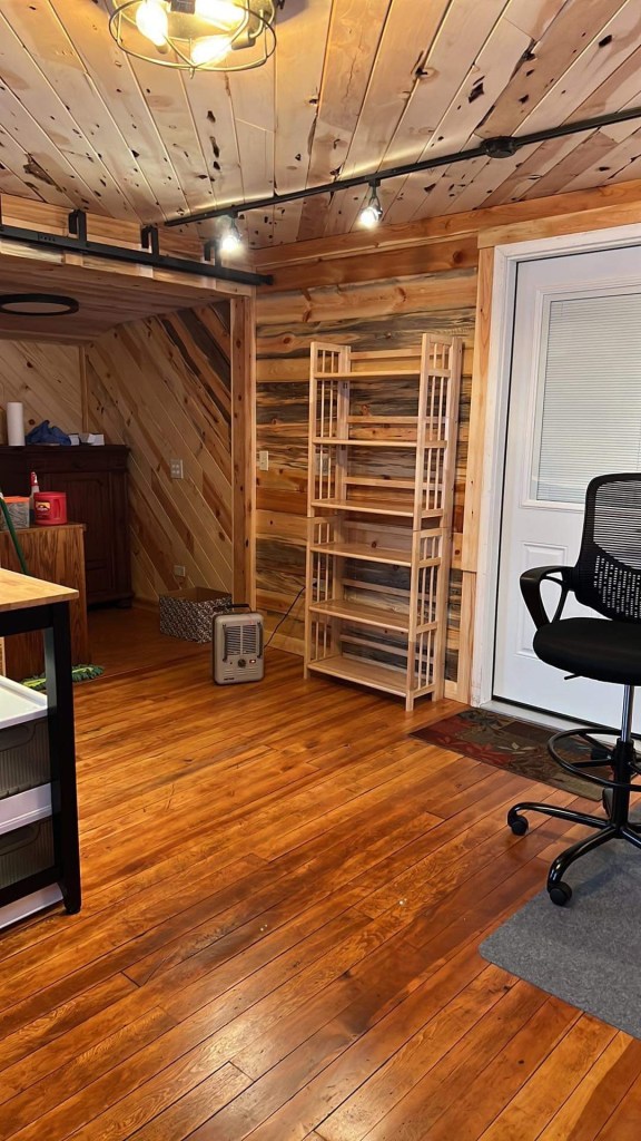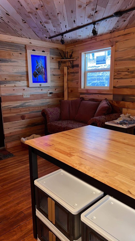 It’s been a long week and it Mother Nature cannot decide what she wants to do. It was clear and warming up at the beginning of the week, now there is snow on the ground and snowing again, we have about two inches on the ground currently. Annmarie has been using her office! I have been slowly putting little things in place. I got our old dining room table in there and we used some table elevators to lift it two inches so we could slide the smaller sorting bins under it. There are now six bins under the table. The new cable for the router came so I will be installing that soon and finishing up the corner trim to hide the cables. Gizmo has a new doggie bed, he didn’t like the old one it was too small for him he thought. Annmarie needs to start bringing out books but she is going to sort them first and thin them out. So I have resisted the temptation to remove them from our bedroom. I would like to see them thinned out also. There is a small table down at her mom’s that she wants me to retrieve and refinish. It has marker, paint and nail polish on it I think. It was from a long time ago when Sarah was a menace. She wants it to go in front of the couch.