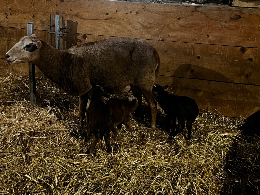 After having one set of twins born for 18 days the rest of the ewes have finally decided to start having lambs. We did lose one of the first twins. It was a lot smaller than the other and did not survive. We have now had six more ewes give birth in the last five days and have already had our first set of triplets born today. Annmarie said that all three of the triplets are big and strong. I am doing the morning chores this year so that Annmarie can get to work on time. She is doing the sheep chores in the evening and I am feeding the cows in the evenings.