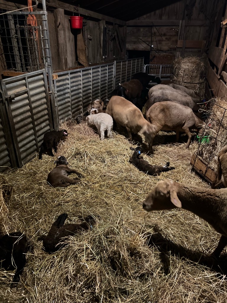 Well lambing is going to be better than last years five months long endeavor but we are definitely not getting it done quickly. We are going to have to go through three cycles to get everyone delivered. What happened to the good old days where one had to worry about the ram losing too much weight because he did not even bother to take time out of his busy day to eat! Our new ram is so GenZ. He does a little business, eats, rests, wanders then remembers occasionally he has a job to do. The baby boys all lay around for 20-30 minutes after getting banded looking like they wanna die. You can see that in the picture below!
