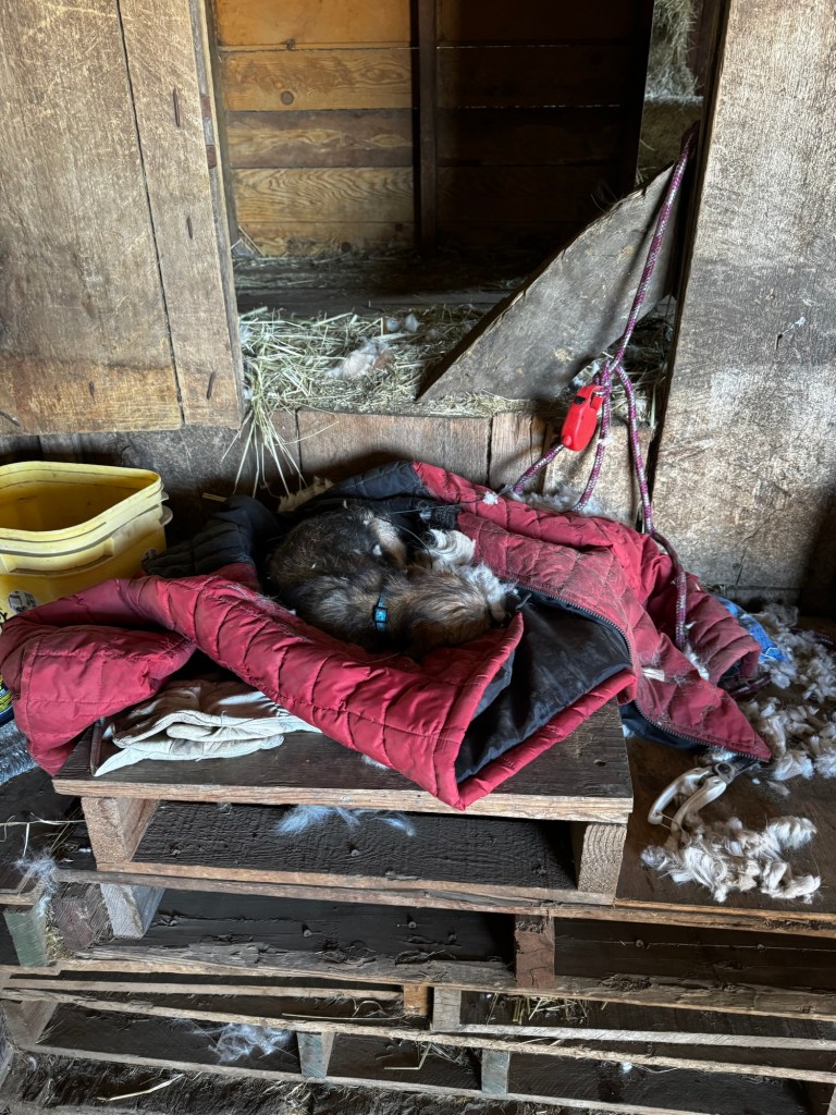 Friends of ours are trying to sell their farm and wanted us to take “Baa Baa” back. The wife had tamed down one of our sheep and it was a pet. I had the stock rack on the back of the pickup and Mr Rainman and I drove over. The wife got Baa Baa back into an old kennel pen. I went in to grab her. Holy Smokes!! Our rams are about 150#, this ewe is so fat that she has teats and has never been bred. I put her at a solid 225#. Mr Rainman and I had to get on each side of her and drag her by her collar to the pickup. It took three grown men to get her up onto the tailgate and into the pen. I was trying to pull down the gate and it got stuck then loose suddenly and hit Mr Rainman’s right hand. This resulted in a lot of pain and swelling and a small amount of blood. (It’s not broken, he had an X-ray). When we came back to the farm we just backed into the field and let Baa Baa jump out of it on her own. Surprisingly, she did not have any trouble jumping down.
