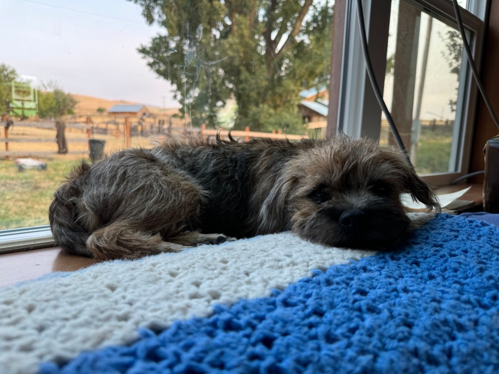 On Wednesday, we had another big event, the dreaded lightning strike fire. We had a storm pass over Pilot Rock and lightning started four fires in a very short amount of time. A couple of the fires got controlled fairly quickly but the wind picked up and started to really spread the flames. The lightning continued to start more fires as it moved. Our area ended up with several big fires. Four days later and there is a state disaster team, agencies and assets from all over the state fighting fires around us. Highway 395 is closed down 39 miles outside of town and we are surrounded by smoke. The fires are continuing to grow. Luckily for us the fire never jumped the highway before town so we were safe and the wheat crop next to the houses is intact and ready to be harvested, not everyone was as lucky. I spent a couple of hours driving around looking for our Border Collie, Chance. She got out of the yard during the storm. She came back to the house as I was headed down the driveway. Annmarie called me to let me know she just showed up at the front gate ready to be let inside the yard. Milo is doing great, he is going to the vet to get neutered next week. He doesn’t know it yet.