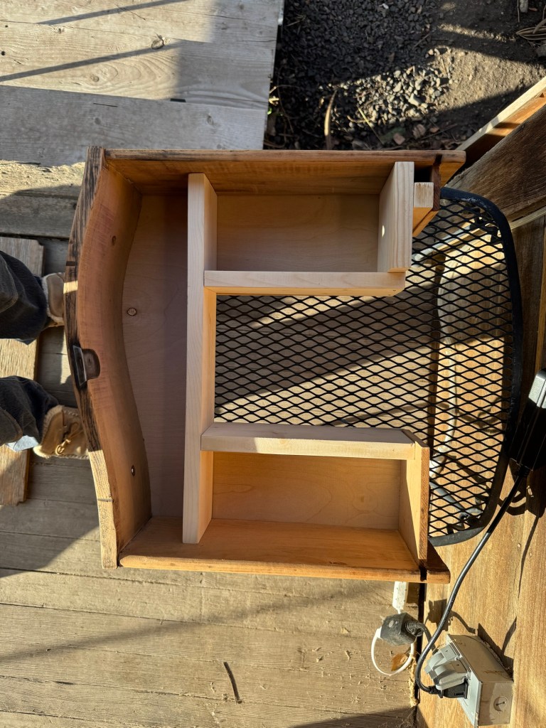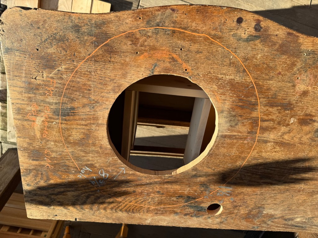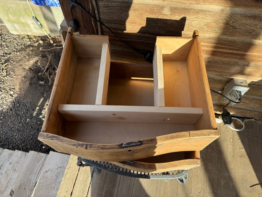 I was able to put the finish on the bathroom vanity. I love “Tried and True” as a finish, beeswax and linseed oil. I coated the entire vanity and it is now ready to go to the Tricities and get a granite top cut. I am planning on doing that this week.