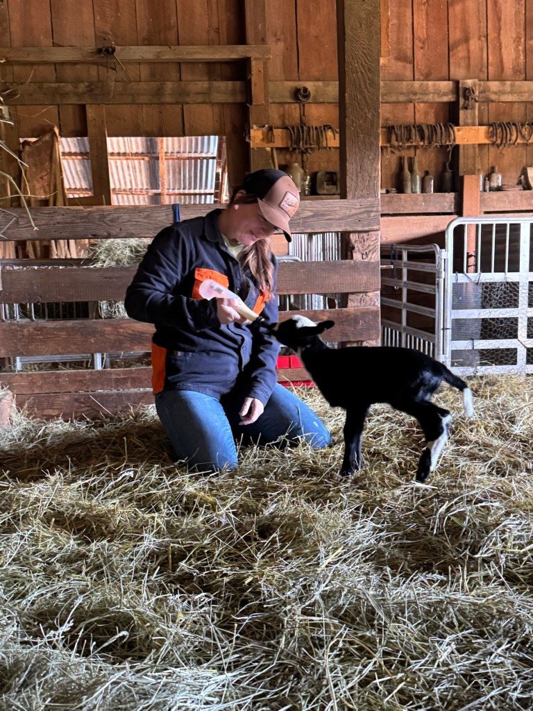 We had to bummer off one very healthy lamb as its mother rejected it. We are continuing to feed Francine morning and night and she must be getting milk from somewhere else because she is only taking a 12 ounce bottle morning and night. The nice thing is she hangs with her mother until the morning or evening feed then she hunts down a human and hollers at them until they feed her. She was so insistent last night that she ended up riding on the tractor with me while her bottle was getting mixed. She just rode in my arms without any difficulties.