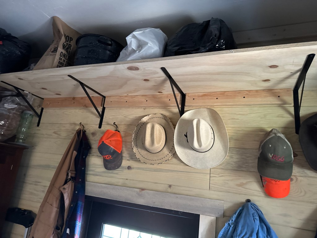 I had to add a small 1”x2” board on the end of the shelf in the mud room that is over the outside door. Opening and closing the door is causing the items to move closer to the edge and then leap off to their potential death. The board is installed and now you do not have to wonder if something is going to fall on your head when you use the back door.