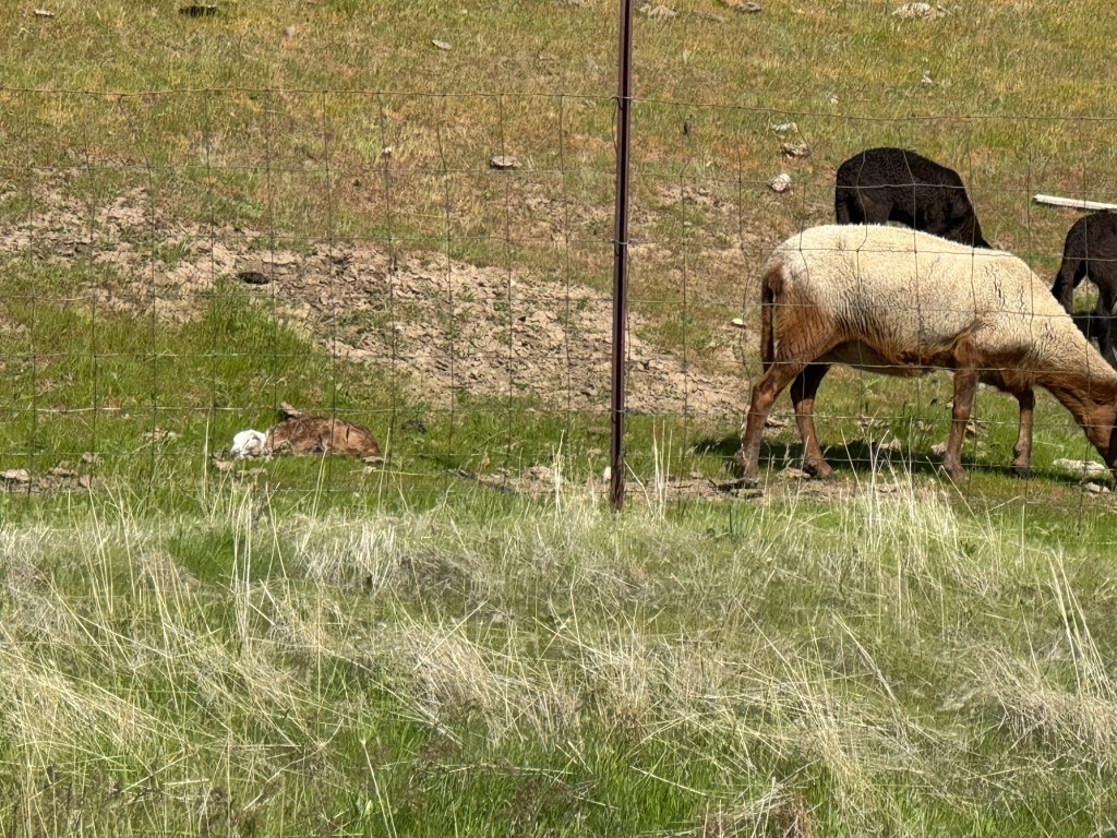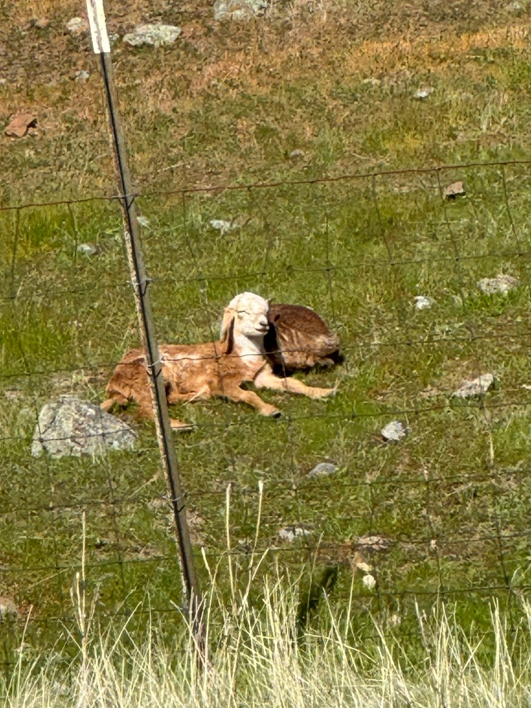 Francine is doing well. She drinks a bottle in the morning and evenings. Tonight she only wanted 16 oz, she had been up to 24 oz but seems to be cutting back. The lambs always look like they are dead when they are on sunning themselves on the back hillside. They love laying in the sun.