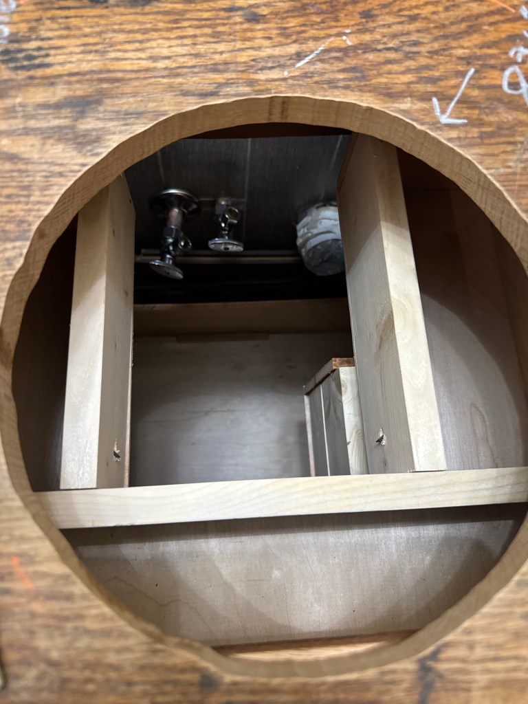 I am definitely going to have to do some reworking on the vanity drawers. The pipes are not in the planned spot. The top drawer is fine but the next two down will need to be reworked. I will just remove the drawers and get the countertop, sink and all plumbing installed then I will worry about fixing the drawers so they will fit.