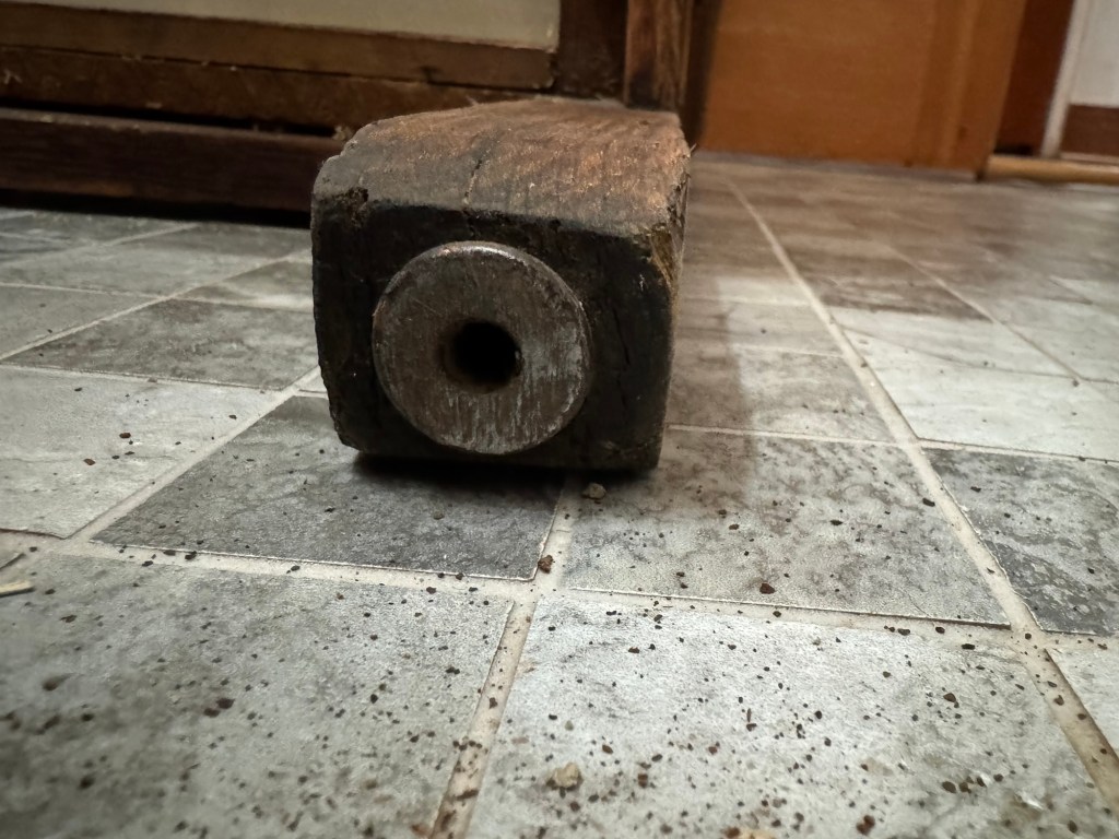 The decorative hook we had ordered to hold open the bathroom door came on Friday so I decided to try and install it. I will have to remove it and put it back on once the final trim is installed. I had the wall hook installed and was tightening the last screw on the door piece when the screw head twisted off! This is a ridiculous problem, I should not have been able to twist off the screw top. Now there is the bottom half of the screw stuck in the door. I could spend an hour and gouge out a huge hole attempting to get that broken part out of the 115 year old door. I am just going to move the piece over 1/8” and drill out a bigger hole so I can easily insert the two screws. This is a stupid problem.