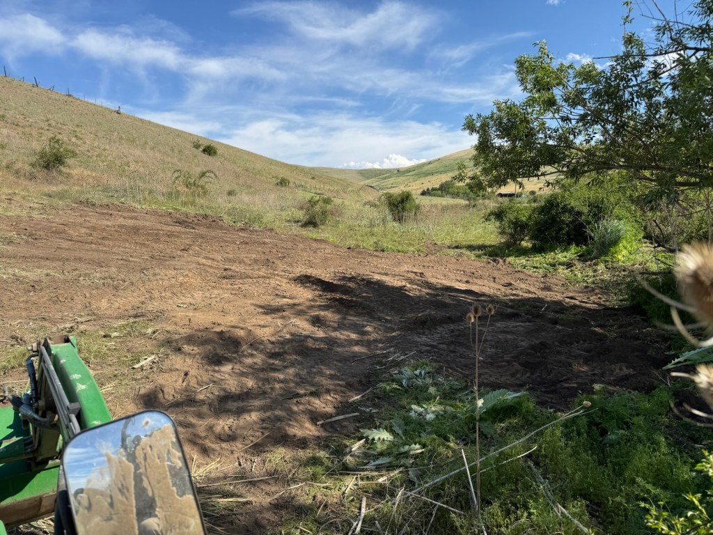 The seven yearling cows that will be sold or eaten this fall got pushed down by four corners. They are in amongst the trees. We are going to start killing the cheat grass in the two fields near the mother-in-law’s house. We hope to get water on them so we can keep getting the cheat grass to sprout then kill it and start the process over.