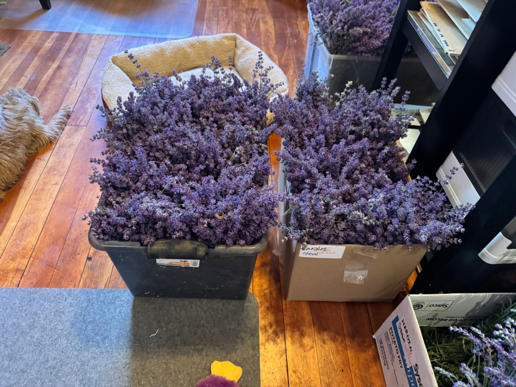 Annmarie posted it on Facebook classifieds and we got zero hits. I had put it all in her office and cranked the air conditioning up so it’s about 62F in her office now. We ended up taking a bunch to work to give away. This was over two weeks ago and another 25% of the lavender patch is ready to be harvested again. The Grosso (type of lavender) still needs another two weeks before it is ready. We are going to use that to redo our wreath we have inside the house. Annmarie puts new flowers on the wreath every year and we hang it up in our dining room.