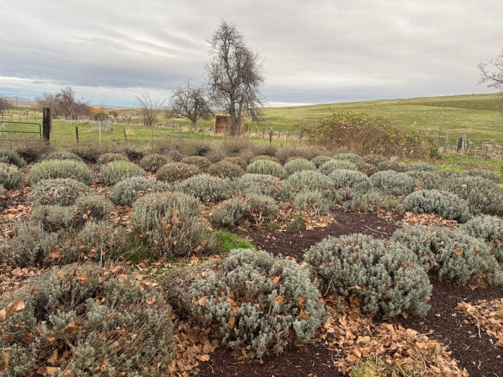 On Sunday it was supposed to rain so after feeding the cows and getting the barn ready for the momma sheep we went out to the lavender patch to trim it up. We had intentions of keeping nice individual plants. In places it is growing into a single row and we are going to let it. While Mr Rainman cut the lavender I worked on pulling weeds next to the yard and in the next walkway. The weeds were the worst in those two rows. In the spring after we spray the grass we are going to have to use some kind of growth inhibitor to keep the grass from invading again. We even spotted a few honey bees on the lavender despite the wind blowing pretty hard.