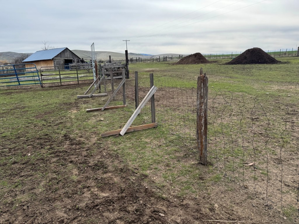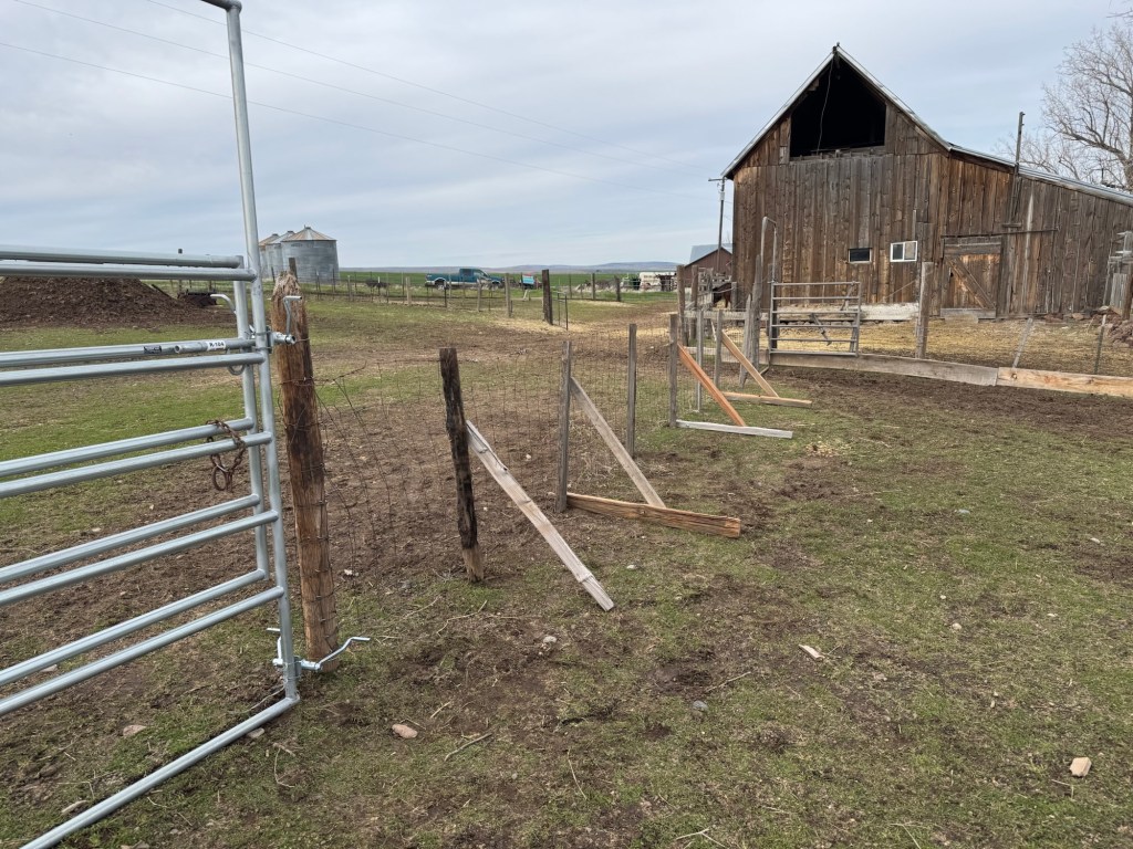 I was able to go out and fill the barn with food for the sheep and since I was out in the barn lot I decided to fix the new gate that the cows bent over. I ended up rolling the gate on one end about eight inches in an attempt to tighten it. The problem was once I did that I could not get the bottom of the gate to stretch into the bottom wire. So I ended up installing a second ratcheting tightener on the bottom also so that I can just tighten the bottom and top at the same time. I got the fence pretty tight but when I went to the middle and hit the top, like a cow, it bent over again. I ended up having to install some triangles to stiffen the fence. Now, the cows cannot just push it over and we can still open the gate if needed without too much difficulty.