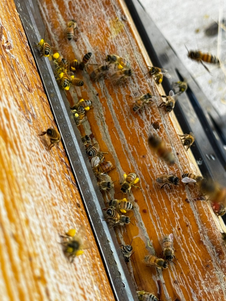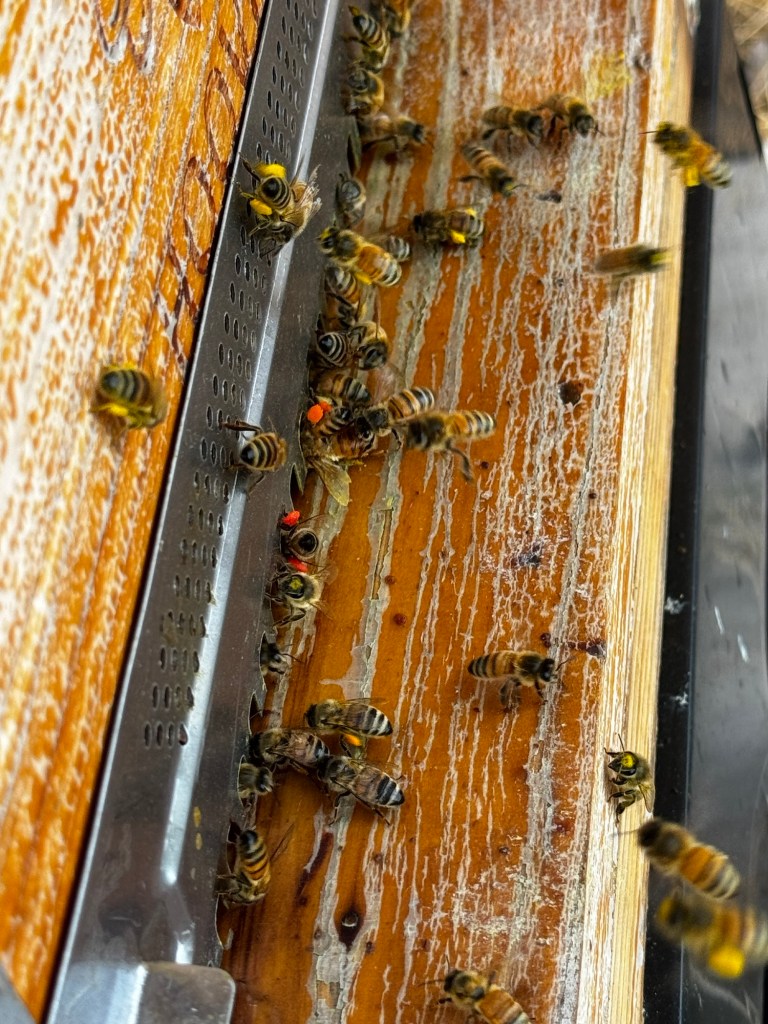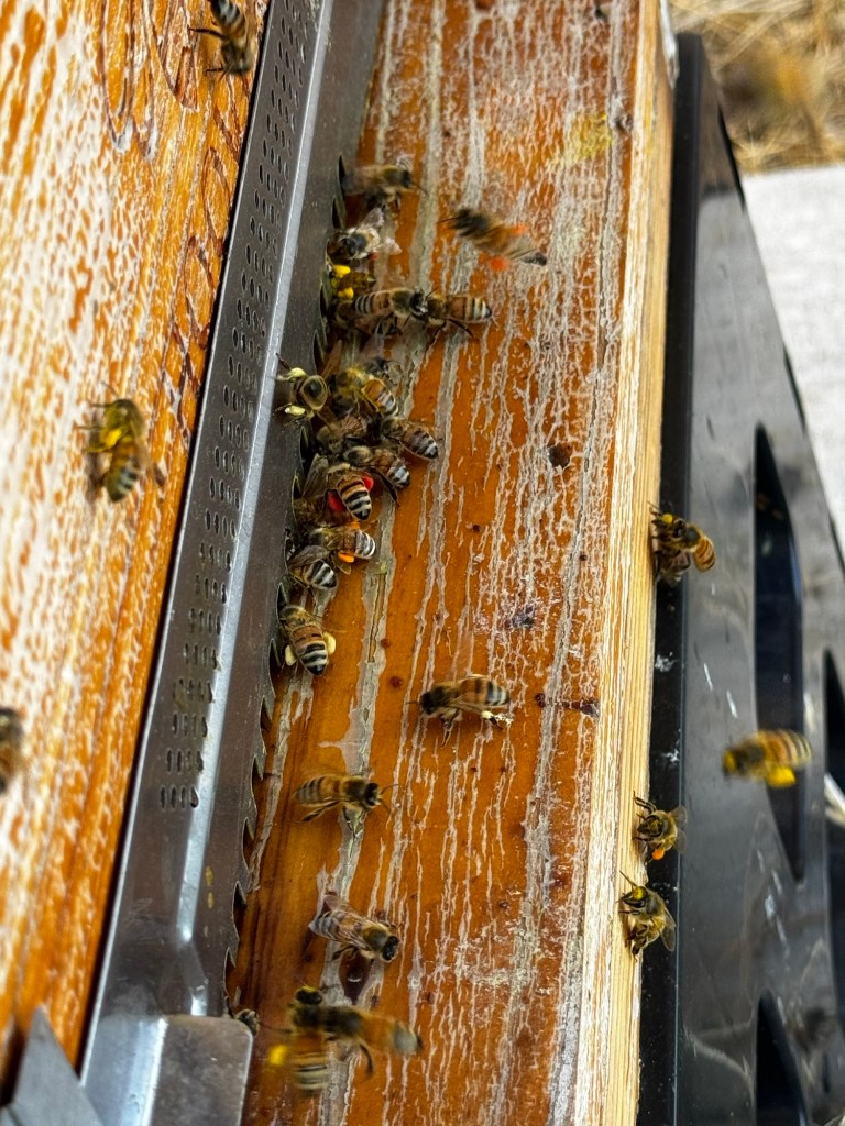 Annmarie went out and checked on the bees. They are doing great and finding all different colors of pollen. They are not even bothering to eat any of the sugar water we put out for them. We pick up our second hive in the evening of May 1.