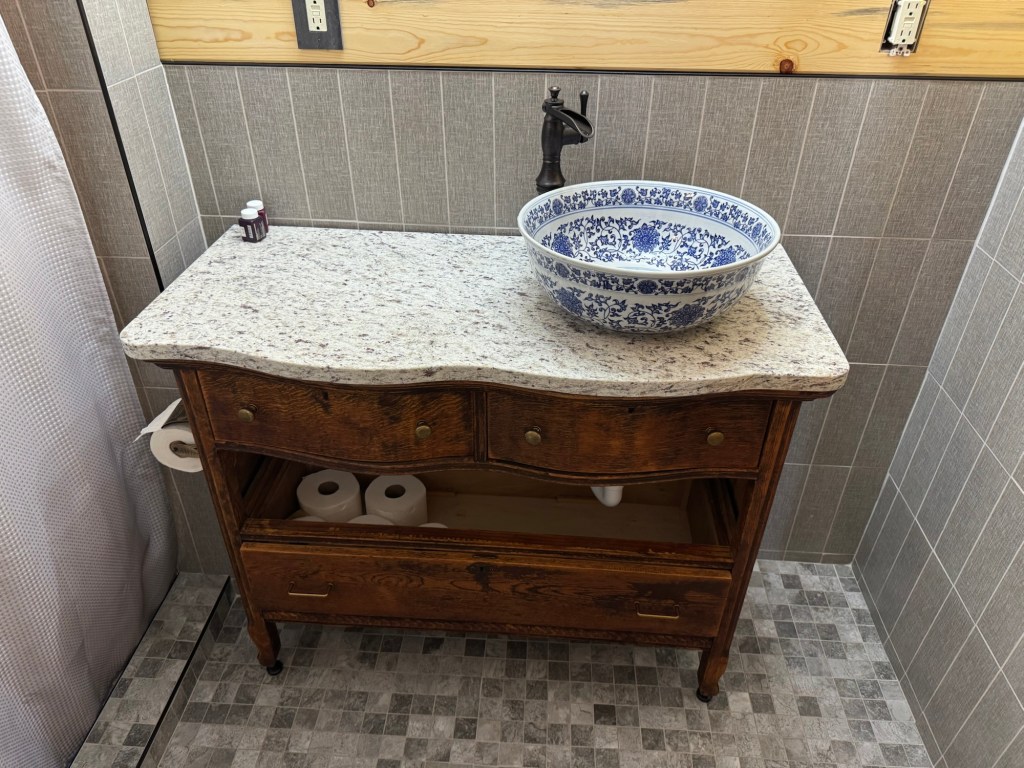 We then set up the table saw and ran all of the bathroom cabinet pieces through it so I could hopefully take some of the wow out of the pieces. It helped. I won’t really know until I start the assembly but now I can actually start the assembly. I will be finding my Kreg tool that lets me drill pilot holes on an angle so I can glue and screw the pieces together.