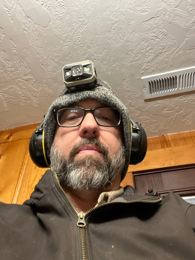 Mr Rainman sprayed some Roundup in a few places around our back elevated garden beds. The gravel needs to not be full of weeds. Then we got ready to go fencing. We filled up the area behind the bucket with wooden stays but we can only carry about 15 stays that way. If we need a bunch of stays we will dump off fencing stuff then use the tractor forks to pick up a couple of hundred stays. As we were crossing the back creek we spotted another pile of wooden stays from a previous fencing job (common issue, as fencing extra stuff tends to stay close to an old job). This was noted in case we needed more we would not have to go to the machine shed. Mr Rainman was able to slap on fence tighteners and crank them down, cut the fence and then it was ready for me. I was able to park close to the site, hop off the tractor and put on my peg leg. The peg leg sounds cool, it is cool, as it allows me to use both hands unobstructed but it takes a ton of energy and effort. So I spliced the fence back together and Mr Rainman installed wooden stays and replaced any missing stay staples and T-post clips. The cows had a path through the fence down by the creek so it got extra wooden stays. The outer hillside fence is nice and tight!