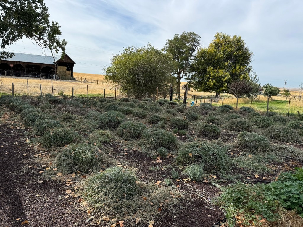 I took the day on Saturday to finish up the lavender. I had spent a couple of hours on it earlier in the week. We have about fifteen volunteer plants growing where they are not supposed to be. But I had to really hack into the plants that tried to die this spring and I am not sure that we will not lose ten plants this winter. So in the spring I will replant all that die and take the extras out and put them in the front yard along the fence. This took quite a while as I had to take a pair of loppers and dig into the plants to cut out the dead and save the live part of the plant. I ended up with quite a pile of lavender scraps tossed over the fence. It is amazing how much scent the plants can put off even if there are no flowers. I smelled so strongly that I was occasionally coughing from the scent overwhelming me.