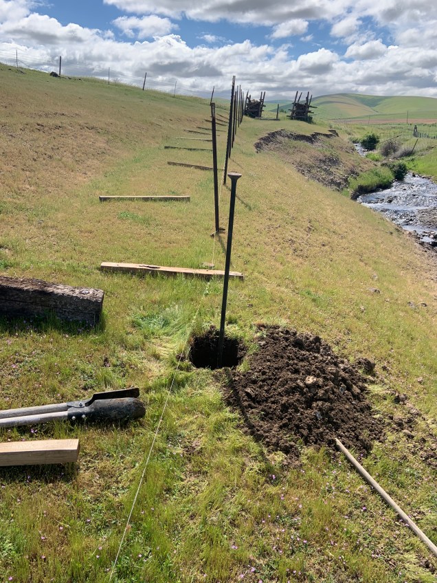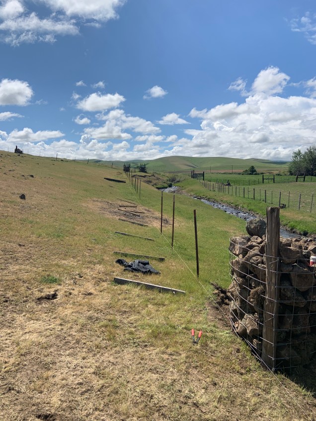3. Install above ground sprinkler system in orchard using 3-300 foot long 1″ poly pipe sections with valves, moving small water pump to ditch and figuring out how to wire in a 110 plug and switch into the main irrigation control panel. Without electrocuting myself in the process hopefully.