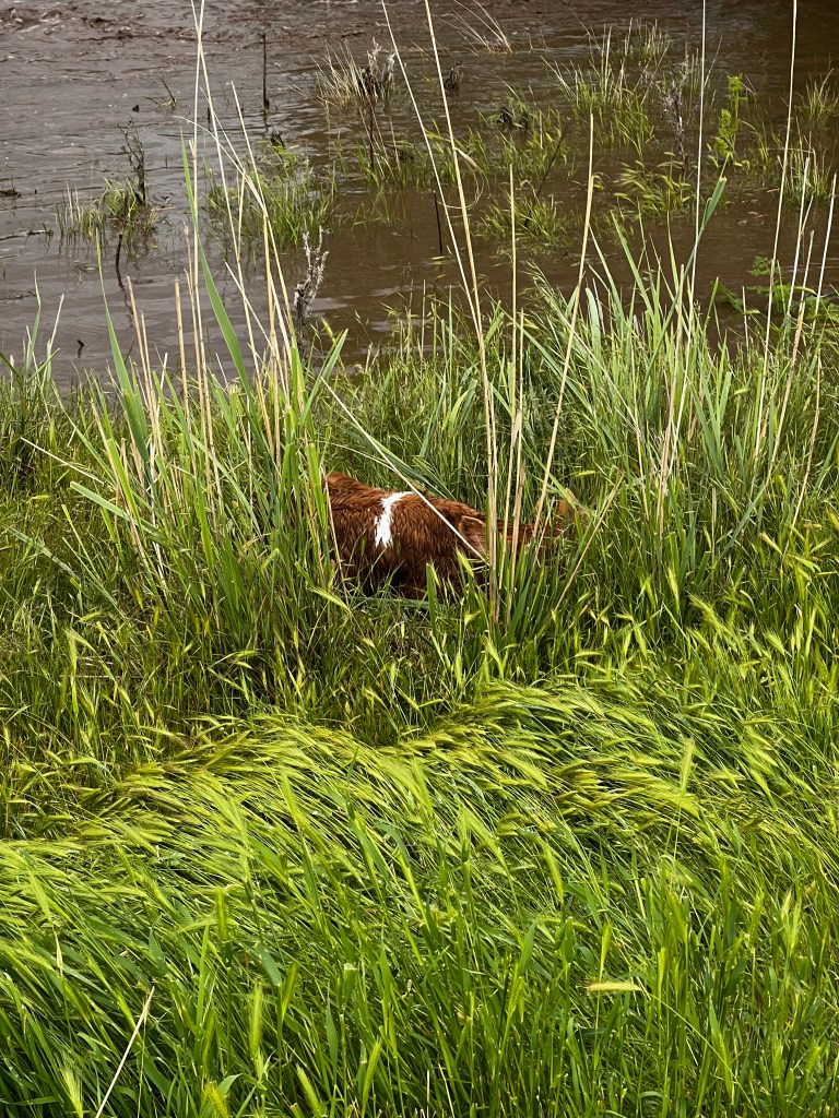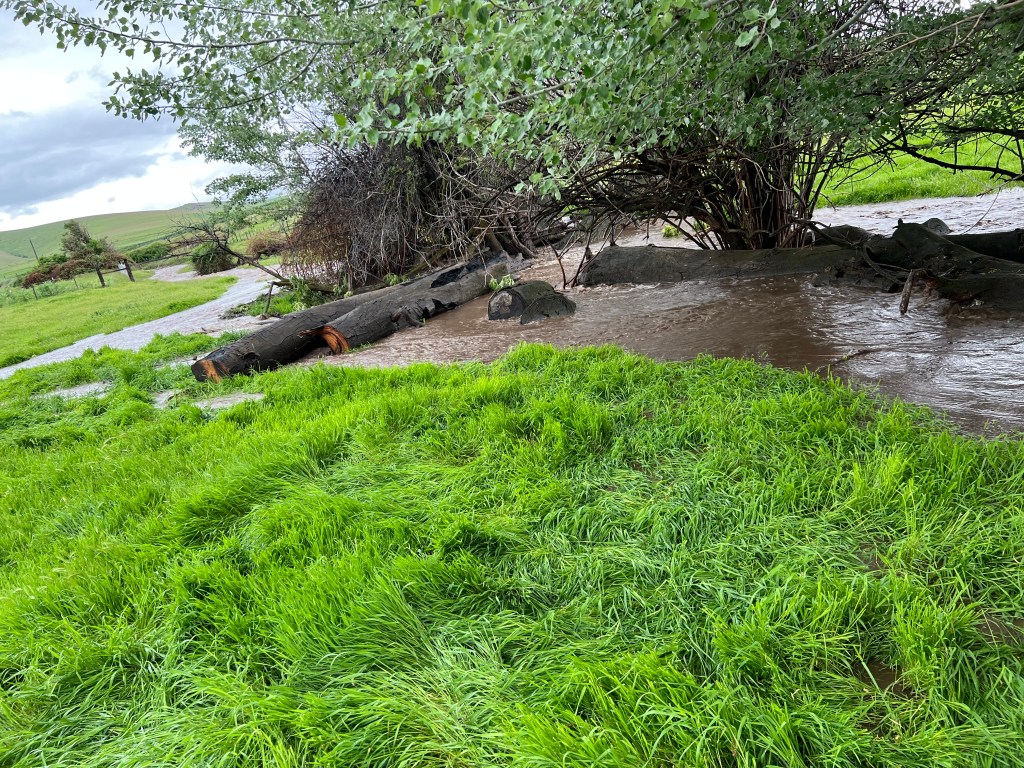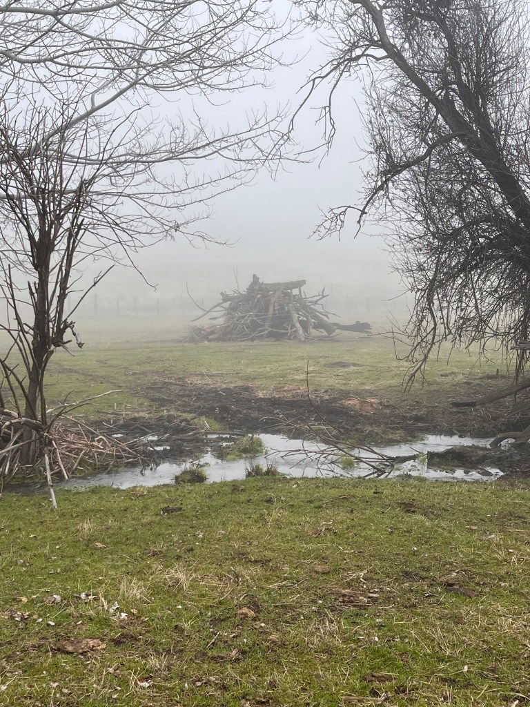 Once Mr Rainman left I took the Kubota tractor out to work on the culvert crossing in field #4b. The spring ditch is so deep now that you can no longer drive a tractor across it. The back half of the culvert was torn out in the last flood. The reason it got torn out was I did not install a rock wall face on that side. It was one of those things I was going to come back and finish later. The side that had the rock face survived the flood but the other side did not. It took a lot more dirt than I thought it would to get the back half built up. I did bring in two loads of very large rocks to place near the culvert. I need about eight more loads to complete that entire side but my chest was not going to allow it. The nice thing about the weekend was it was the first one in ages where I was able to work the entire weekend without stopping early to rest. Things are improving.